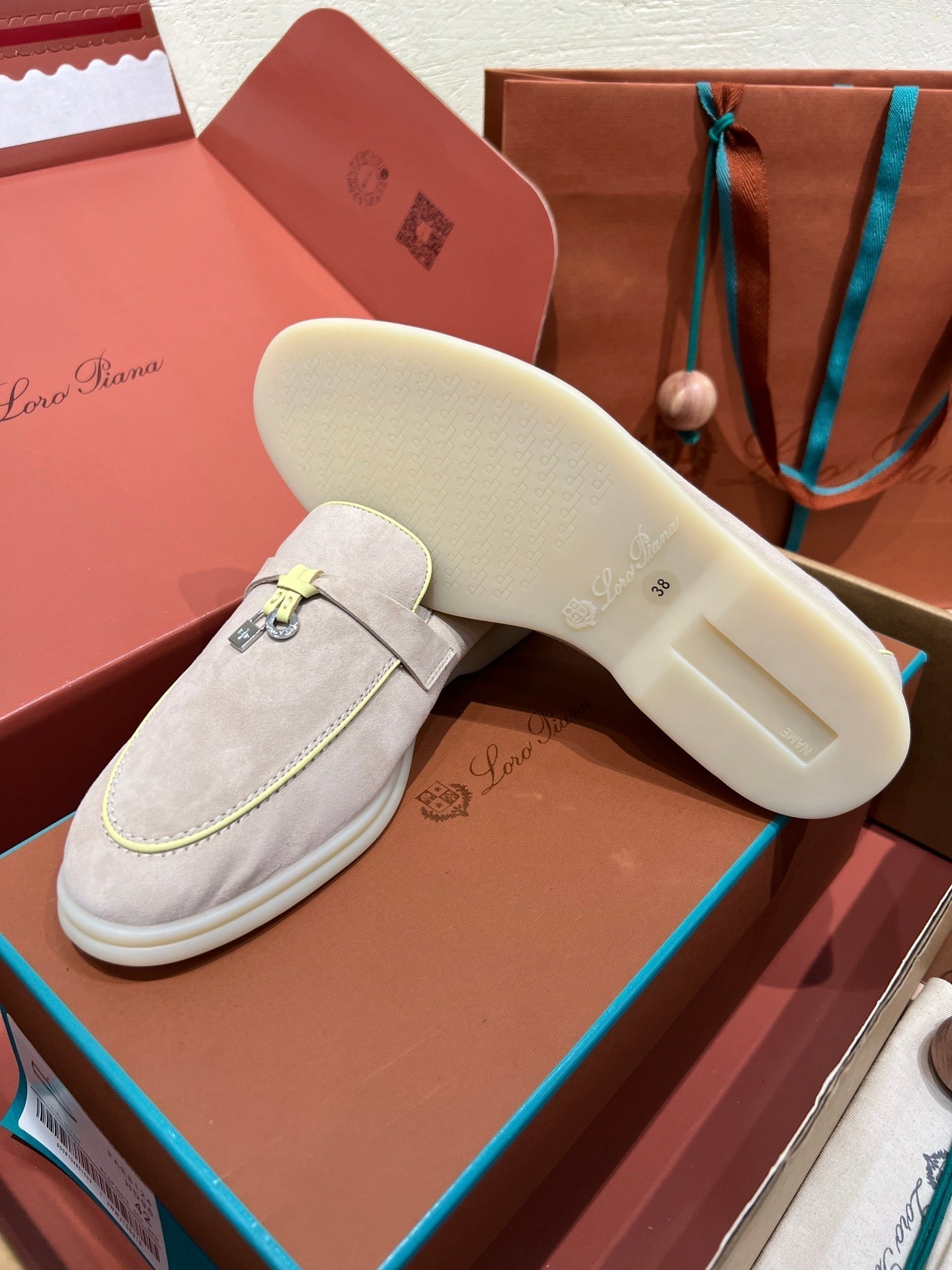 Loro Piana Light Pink Suede Summer Charms Walk Loafers
