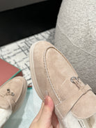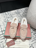 LP Summer Charms Walk Loafers In Almond Beige Mix White Suede With Rabbit Fur Lining 985648