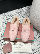 LP Summer Charms Walk Loafers In Light Pink Mix Beige Suede With Rabbit Fur Lining 985642
