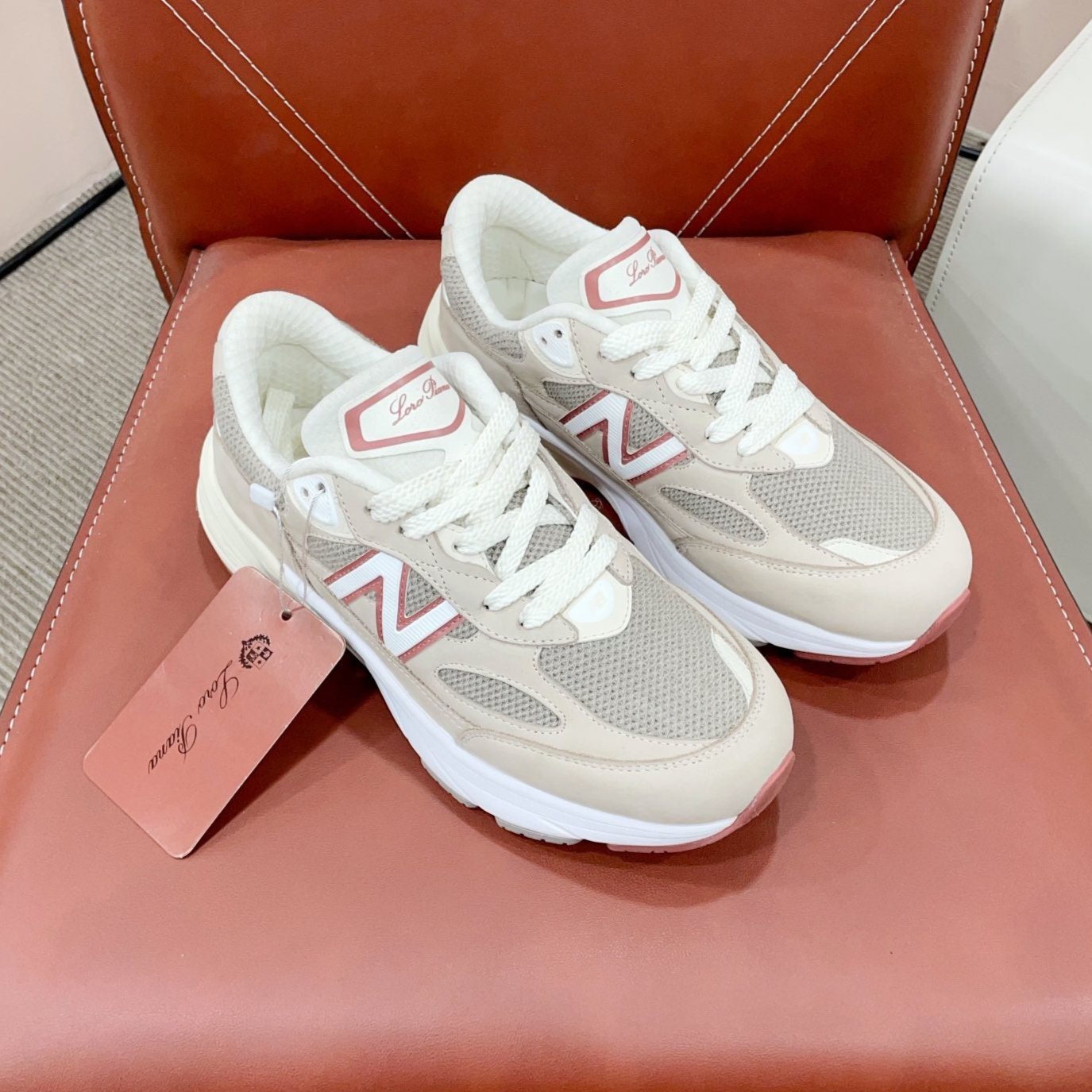 LP x NB 990v6 Sneaker 45mm white grey pink suede and mesh fabric