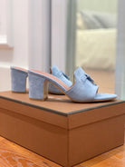 Summer Charms Mules 80 Sky Blue Suede Pink Lambskin