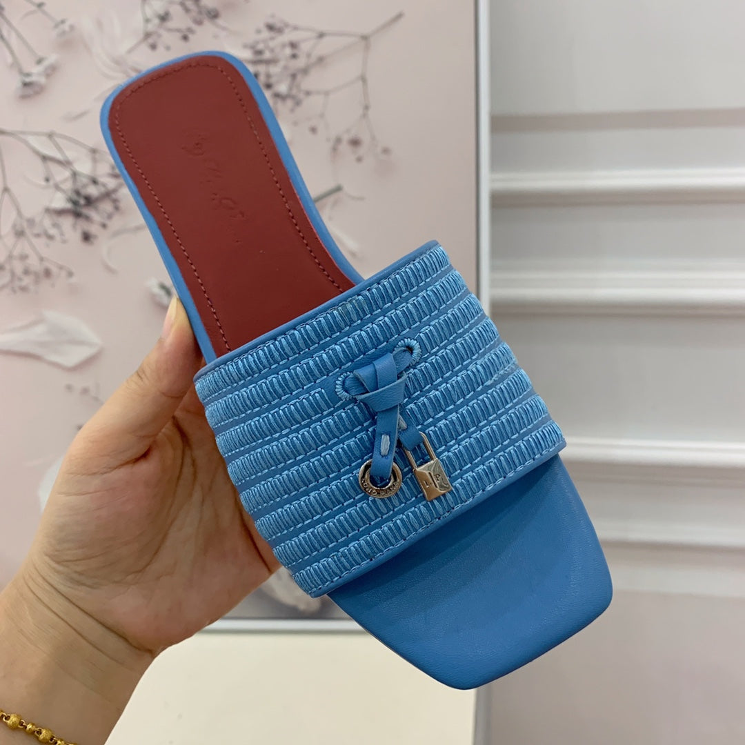 Sprightly Charms Sandal Piana Slippers White Cloud Blue Navy Calfskin