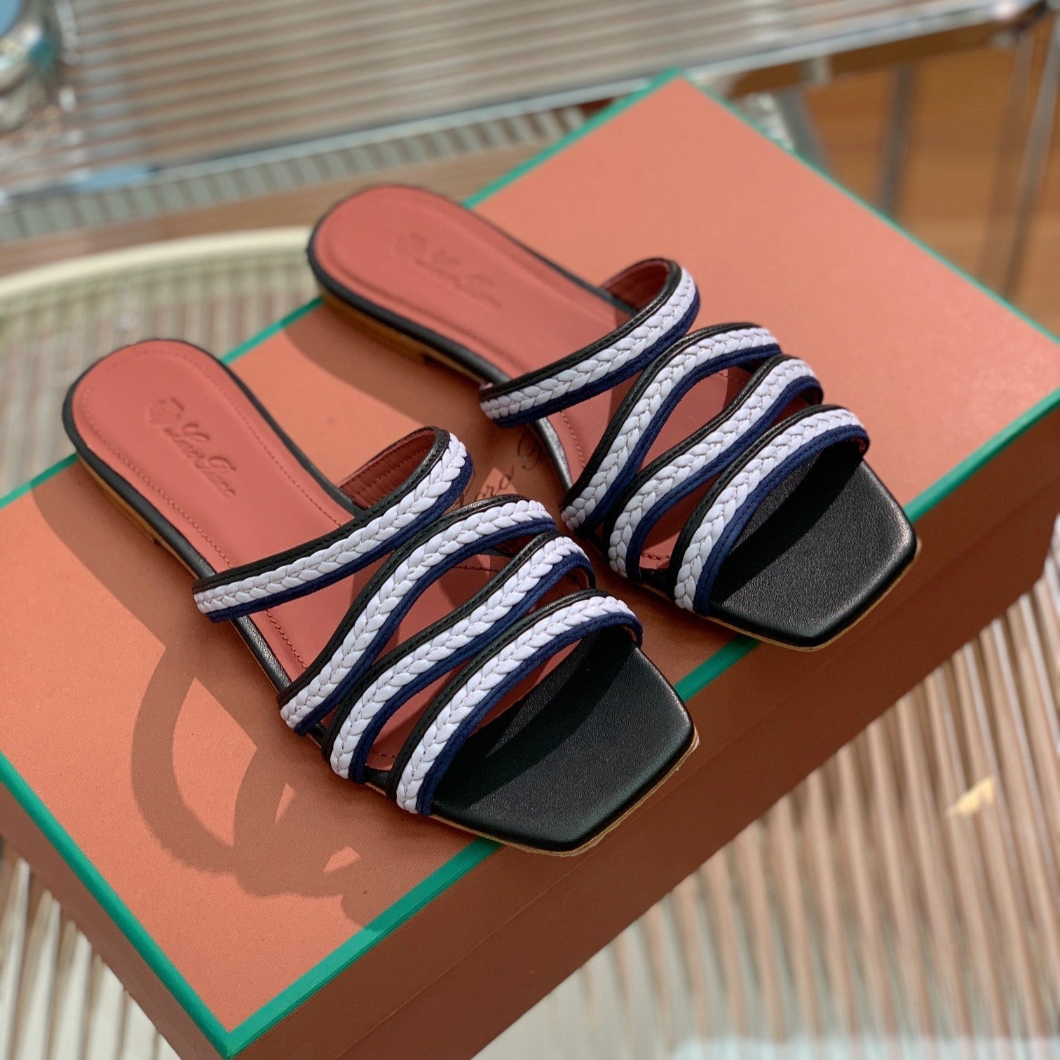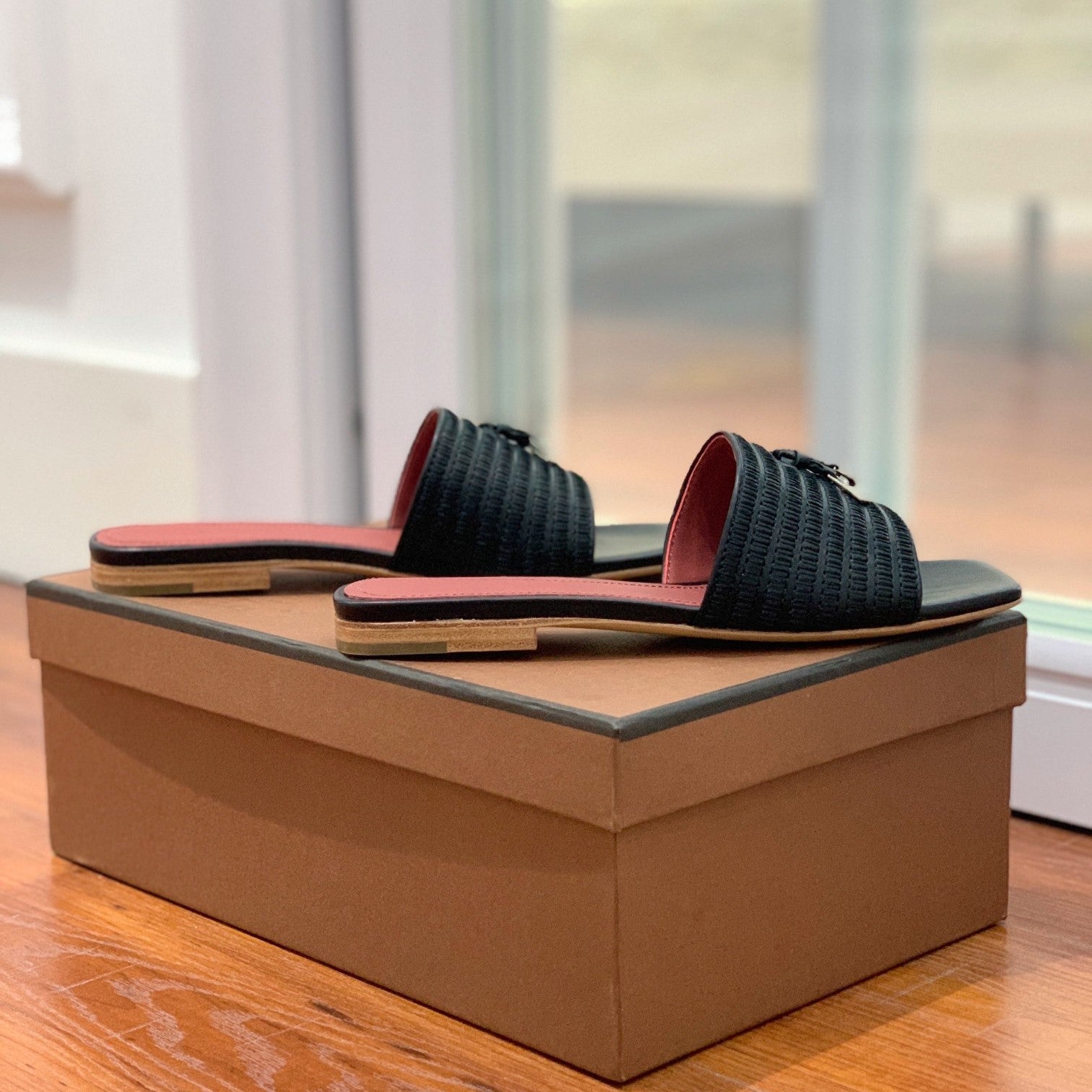 Sprightly Charms Sandal Piana Slippers Black Purple Navy Calfskin