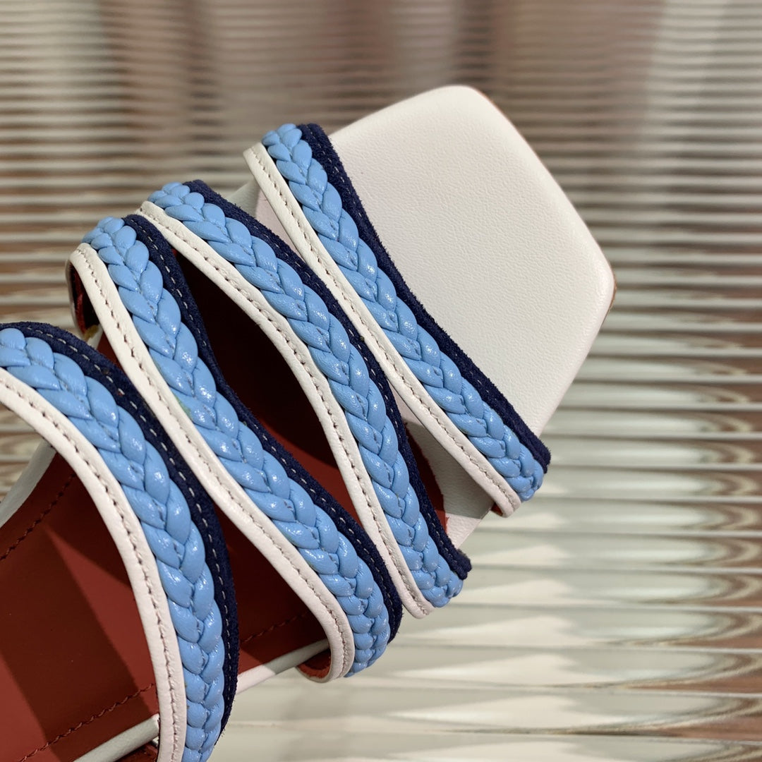 High Hee 60 Sprightly Charms Mule Sandal White Cloud Blue Navy Calfskin