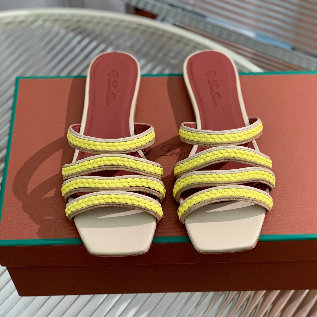 Sprightly Charms Sandal Piana Slippers Beige Yellow Brown Calfskin