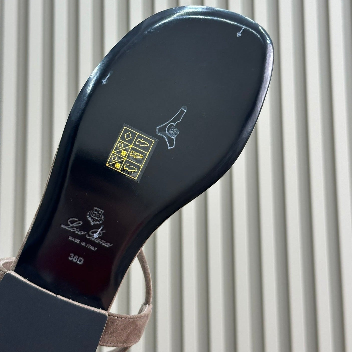 Loro Piana Beige White Suede Charms Walk Flat Mules