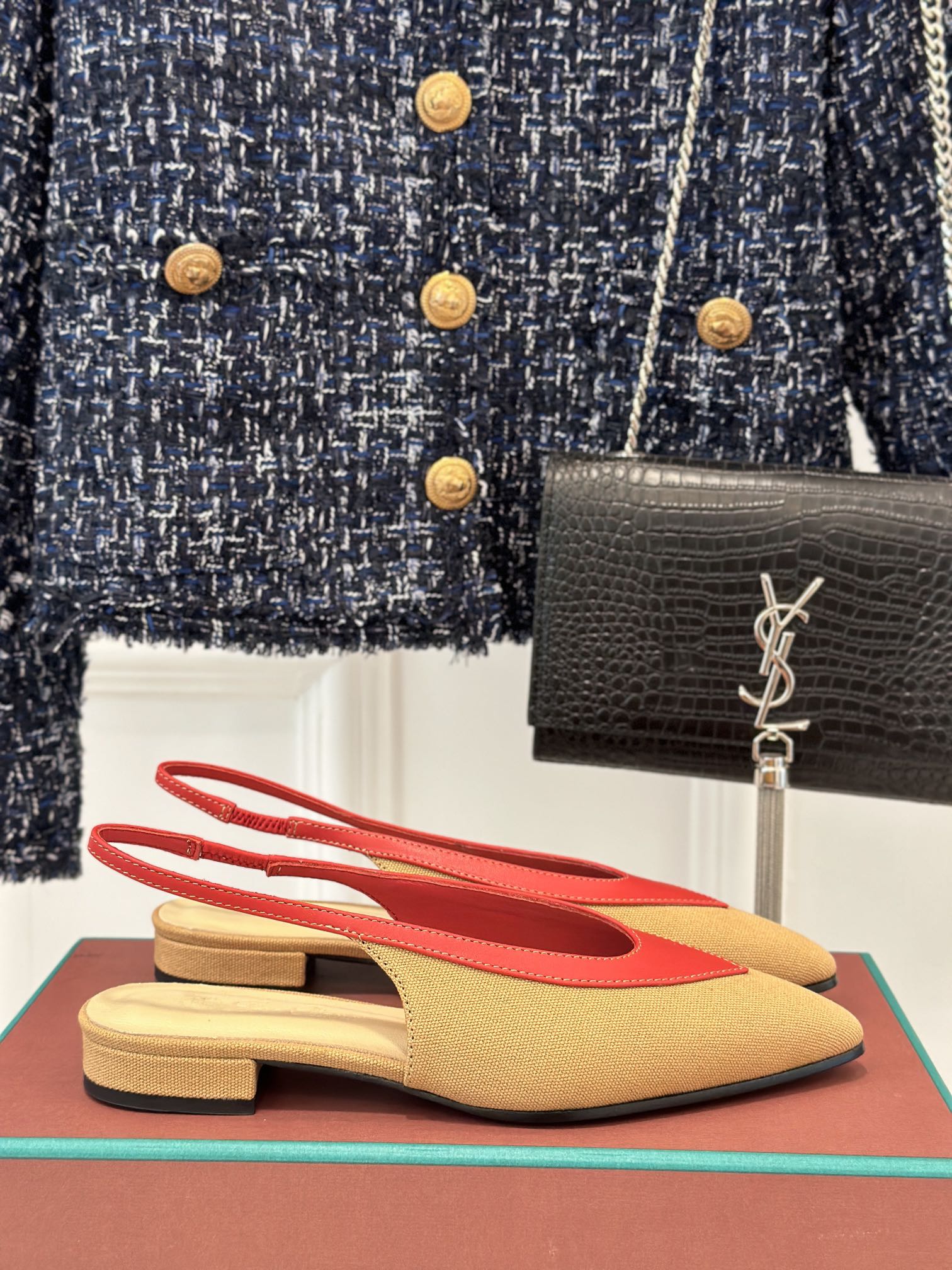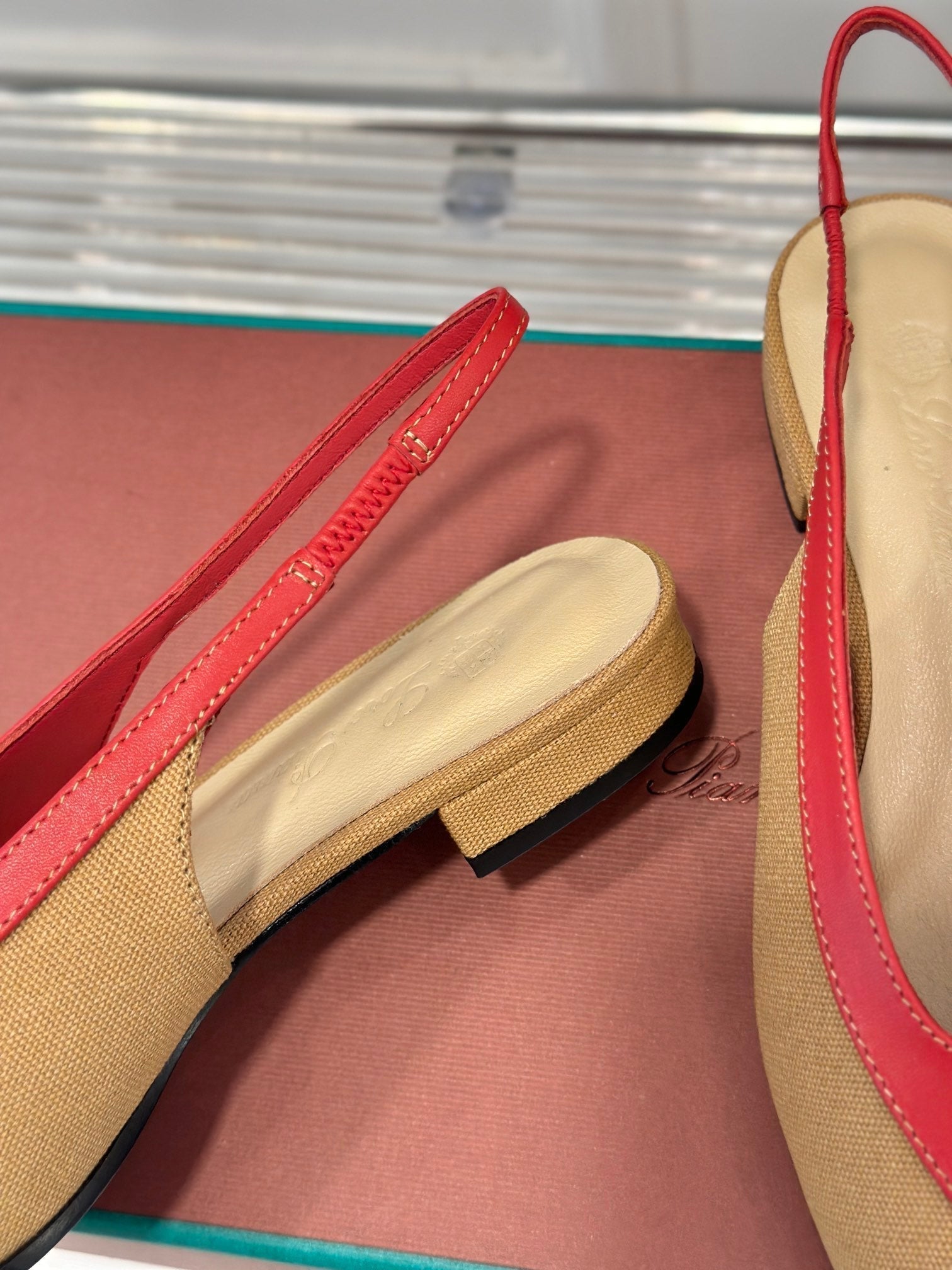LP Rebecca Slingbacks In Mustard Brown Mix Red Cotton Fabric And Lambskin 989419