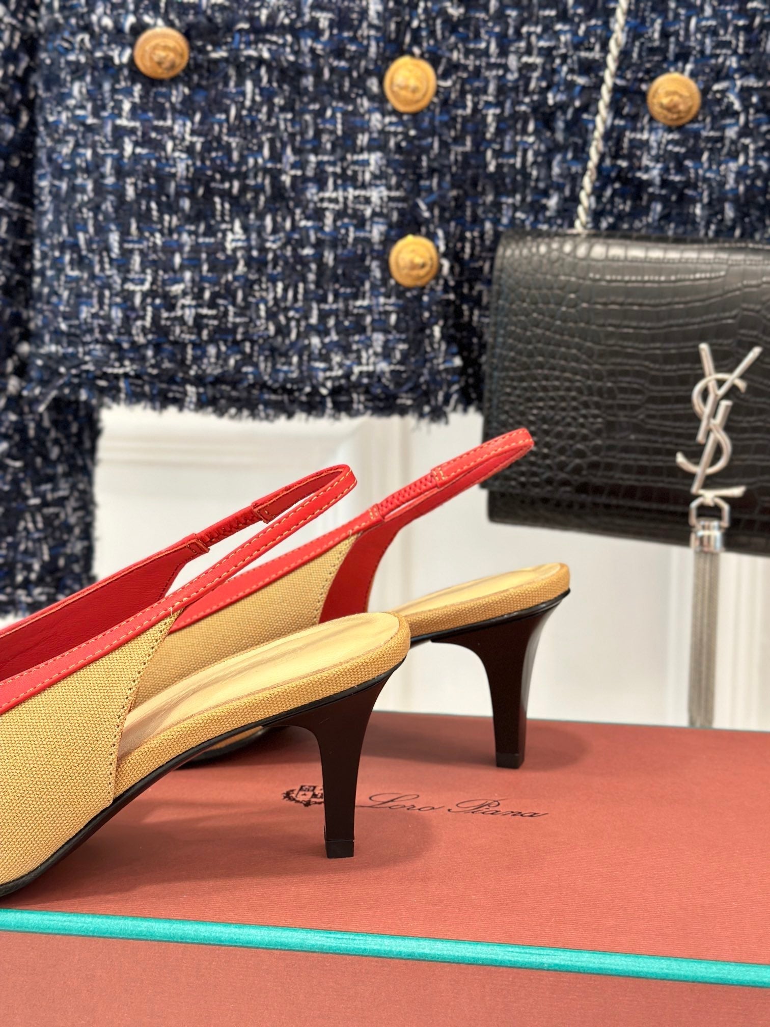 LP Rebecca Slingbacks In Mustard Brown Mix Red Cotton Fabric And Lambskin 989414