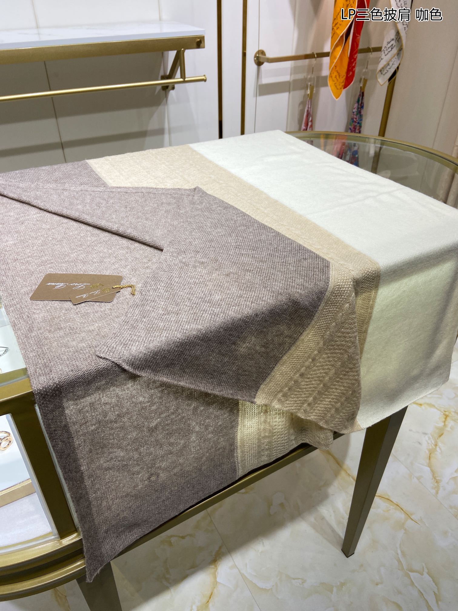 LP Grande Unita Scarf 190 CM In Dark Beige Gradient Brown Earth Cashmere 430414