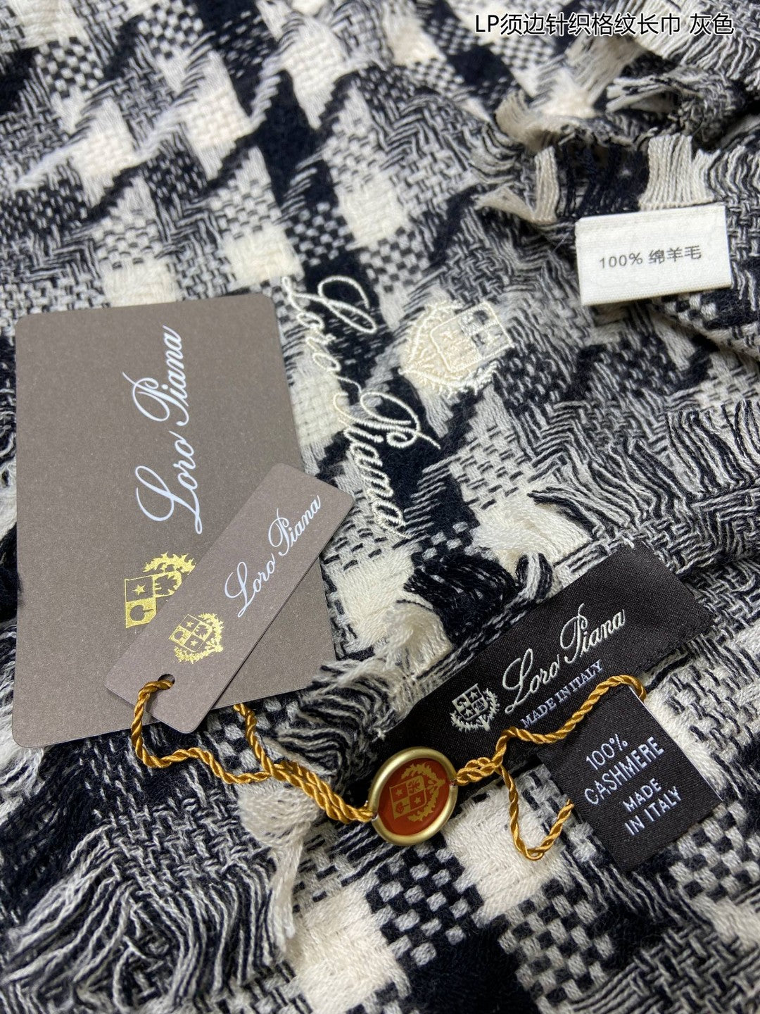 LP Grande Unita Scarf 200 CM In Black Grey Cashmere 645516