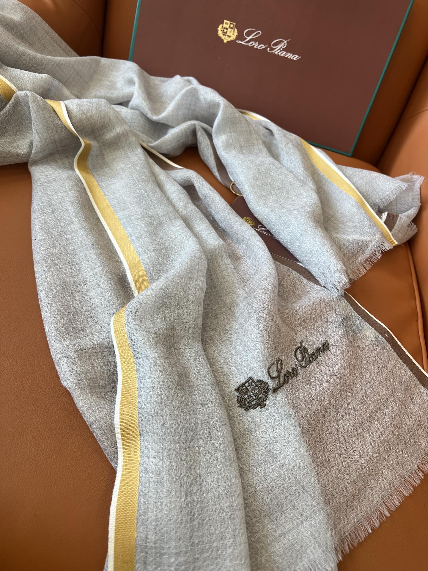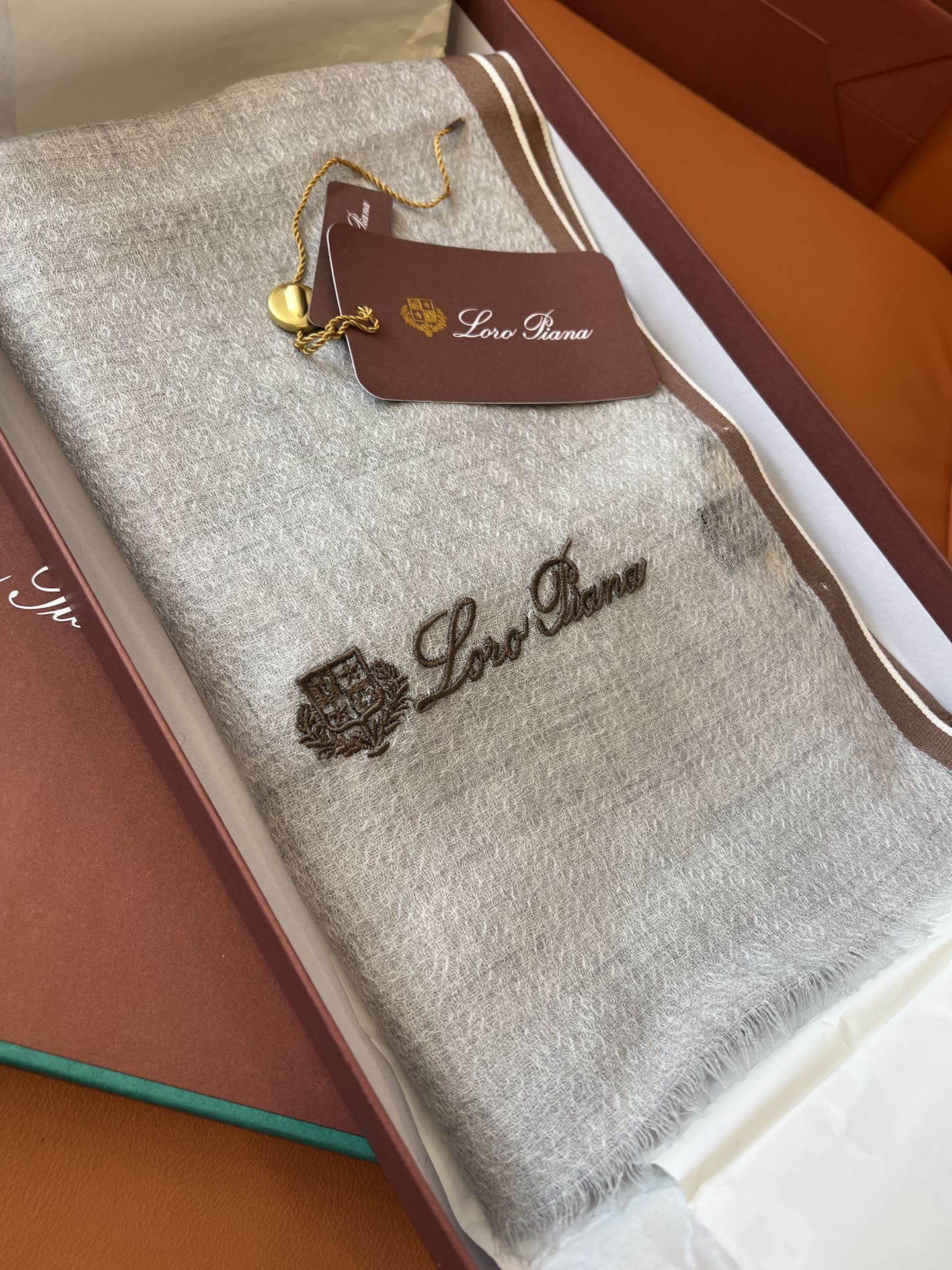 LP Grande Unita Scarf 180 CM In Light Grey With Light Brown Cashmere 175044