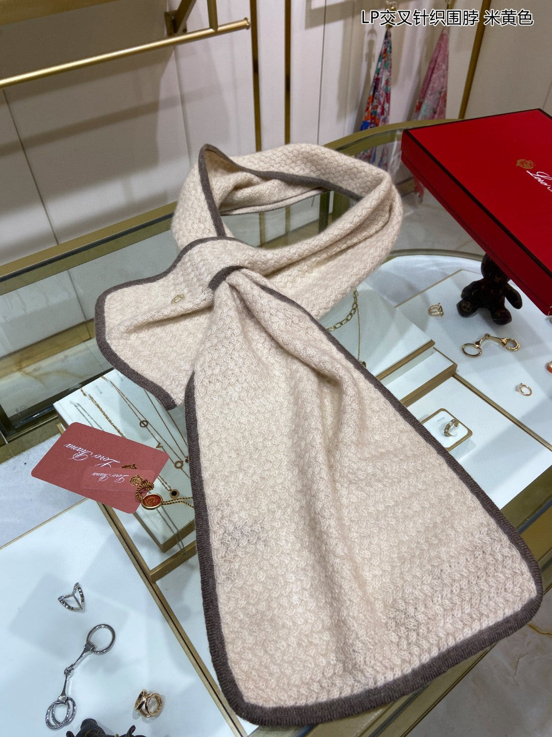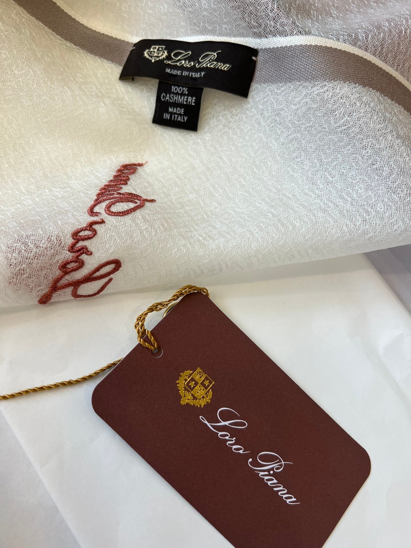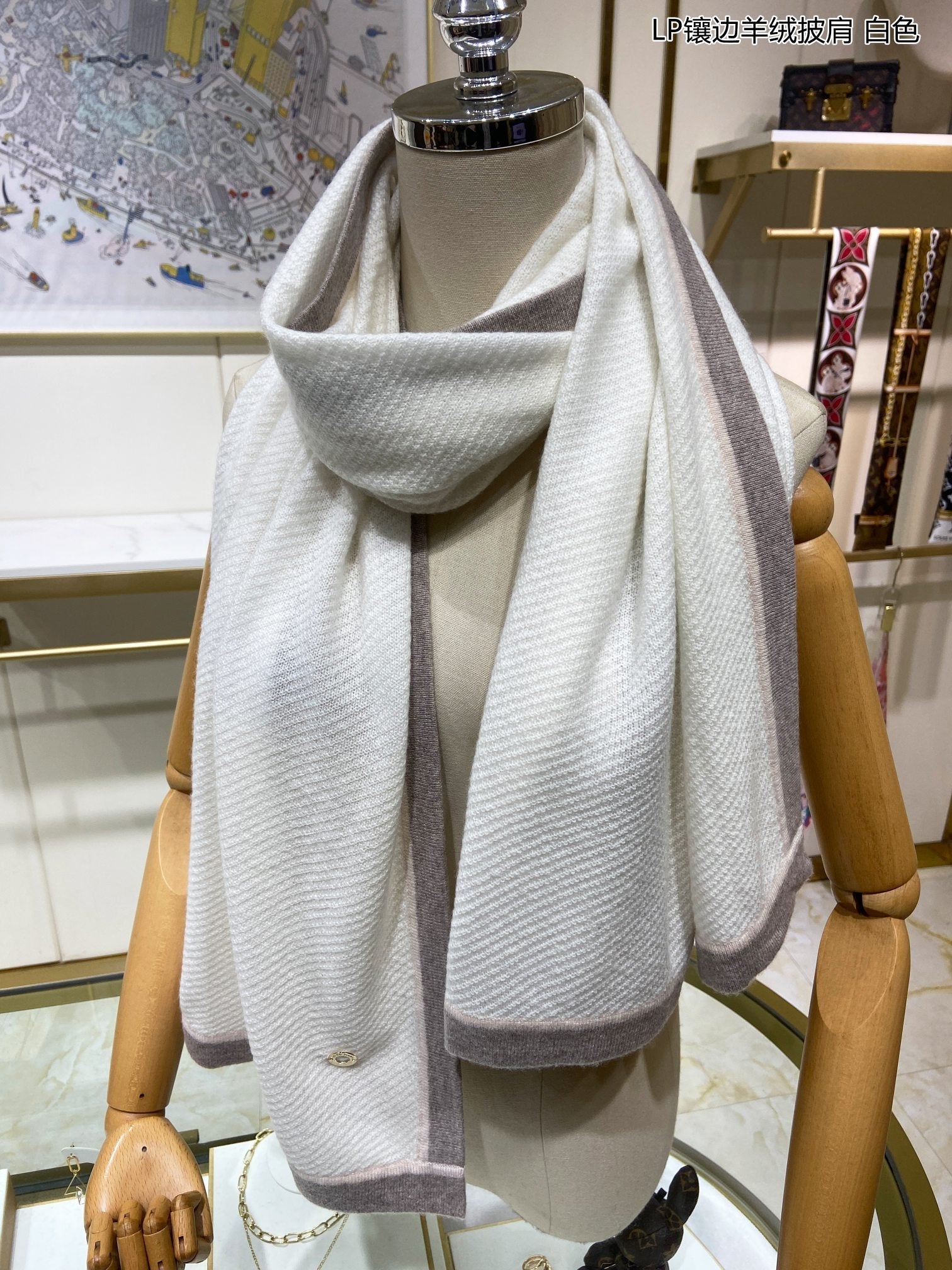 LP Scarf 125 CM In White With Earth Brown Border Cashmere 201757