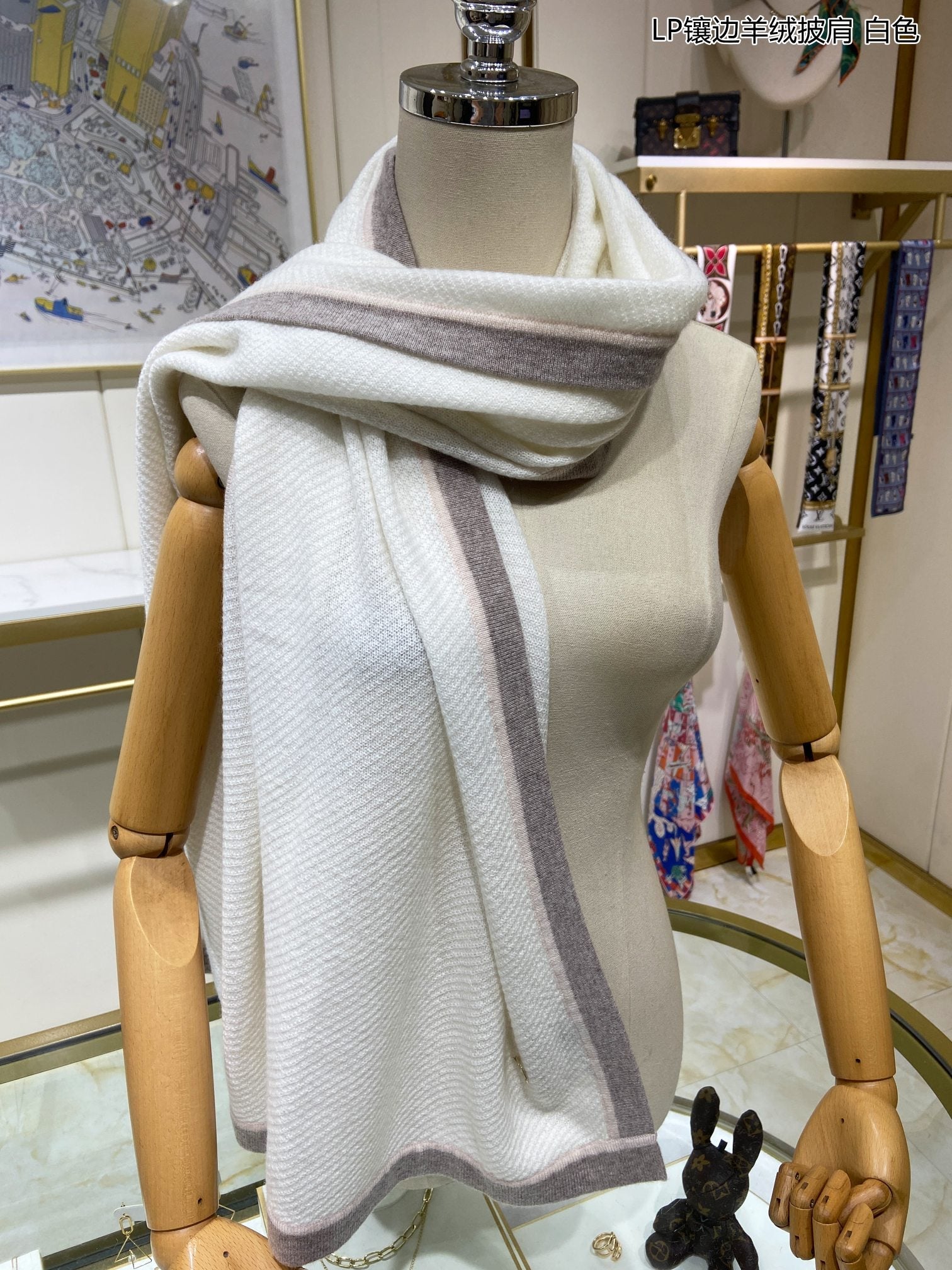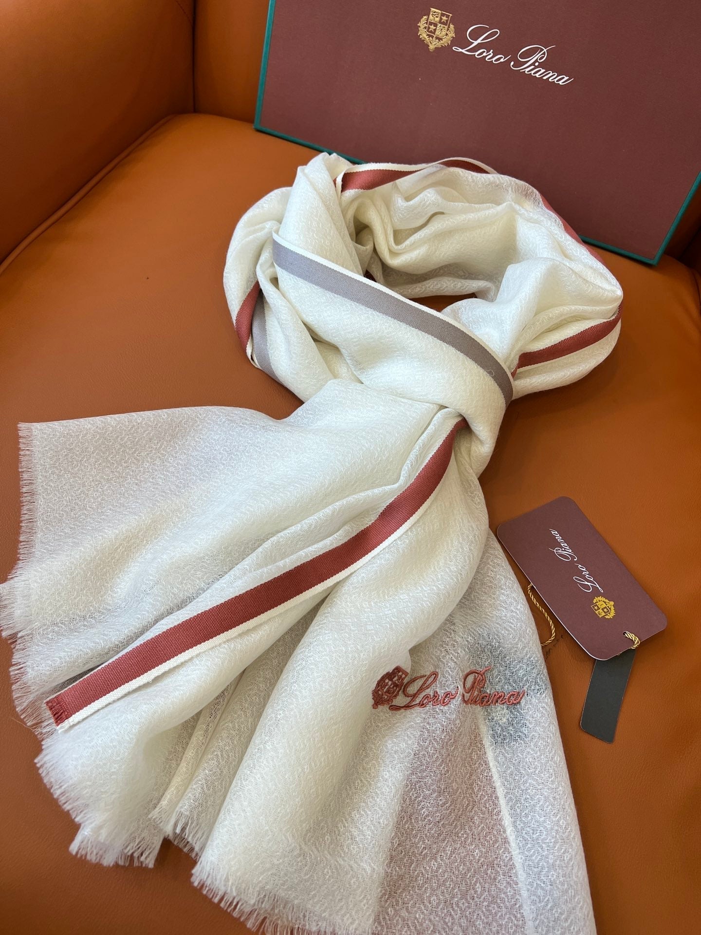 LP Grande Unita Scarf 180 CM In White Mix Beige Cashmere 403789