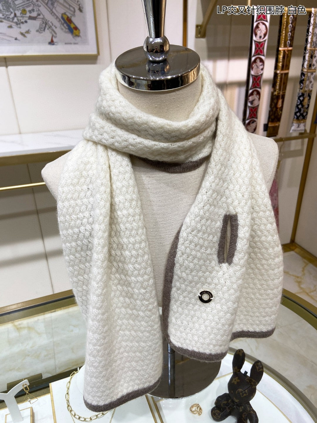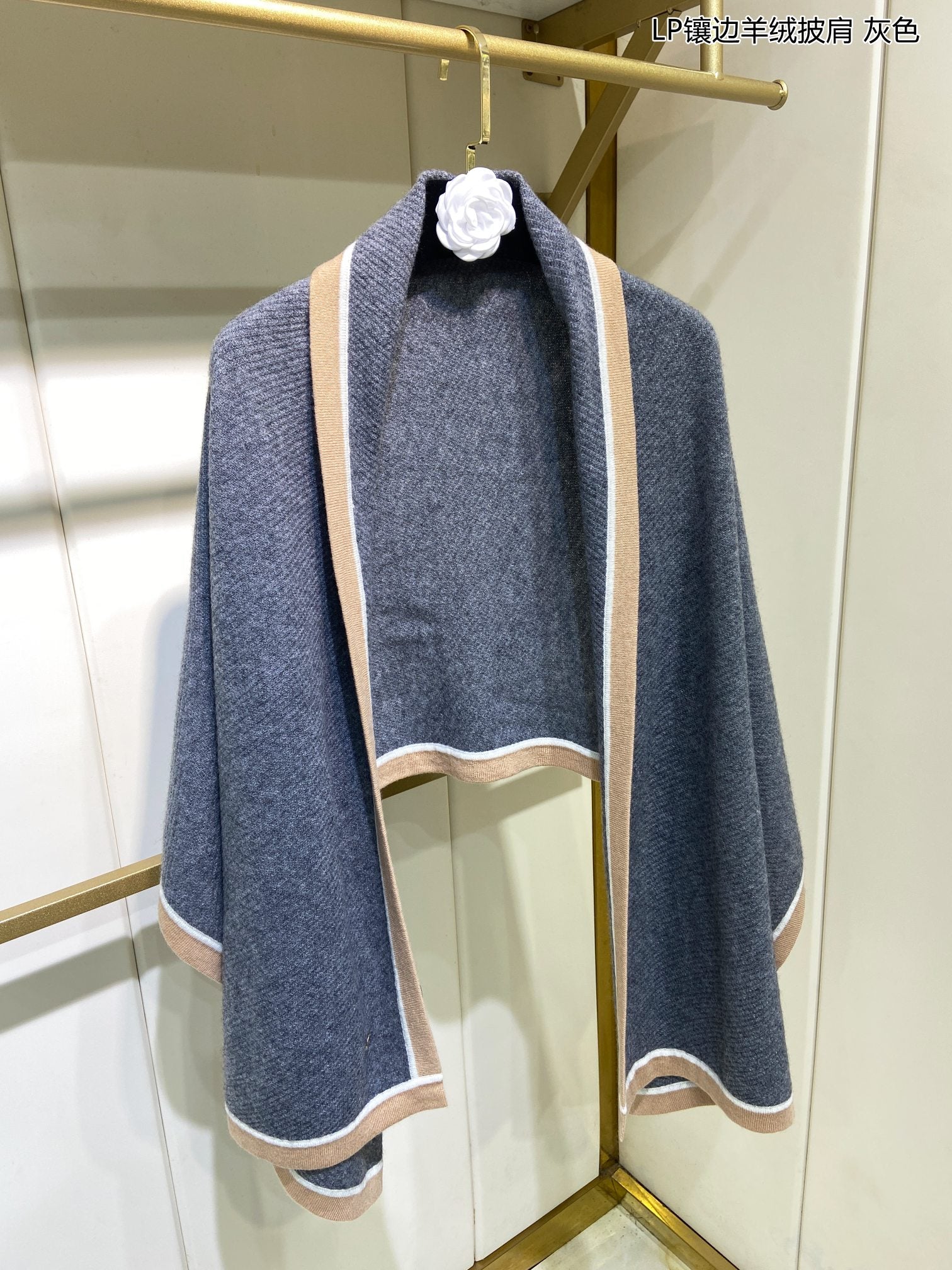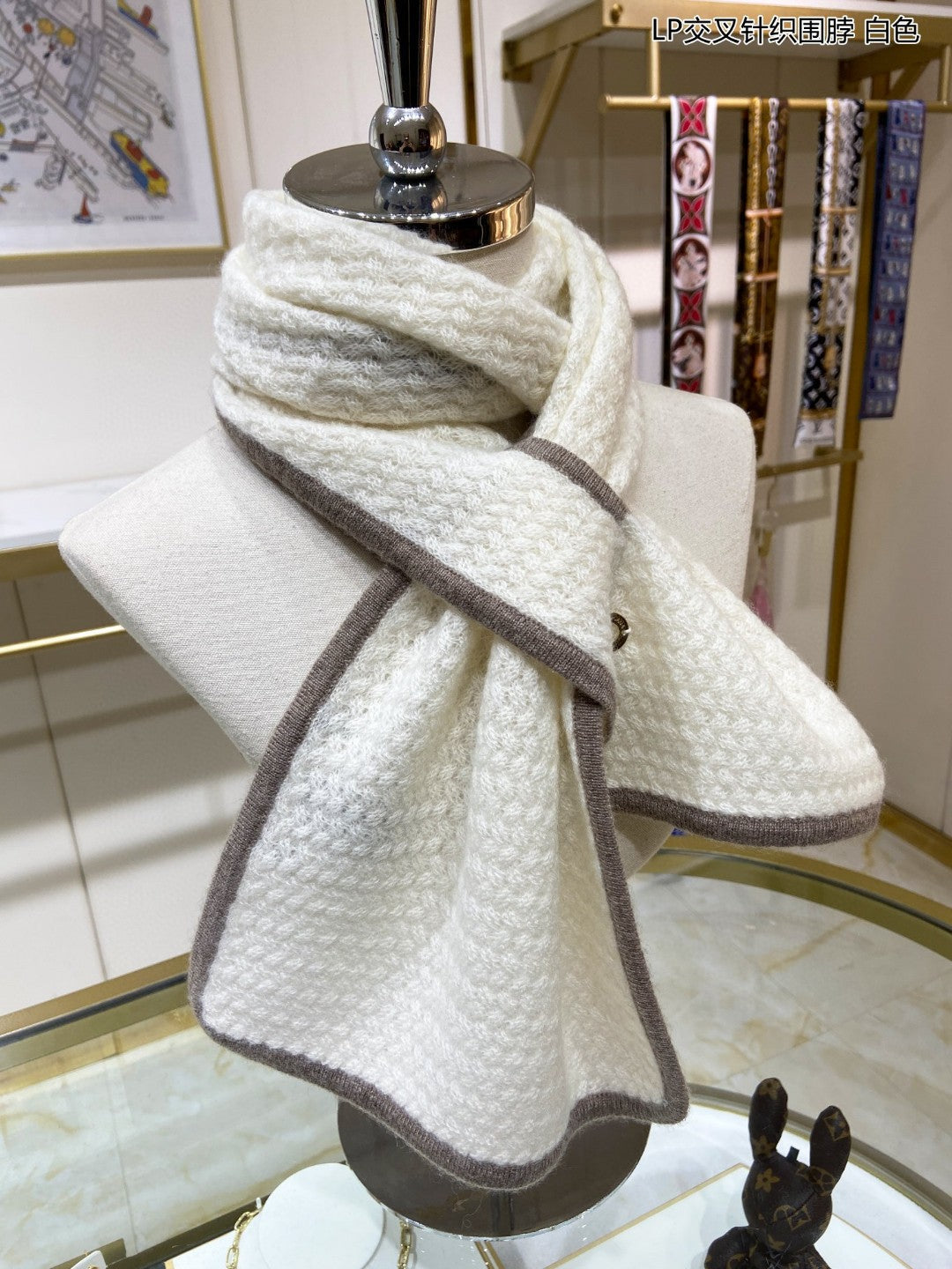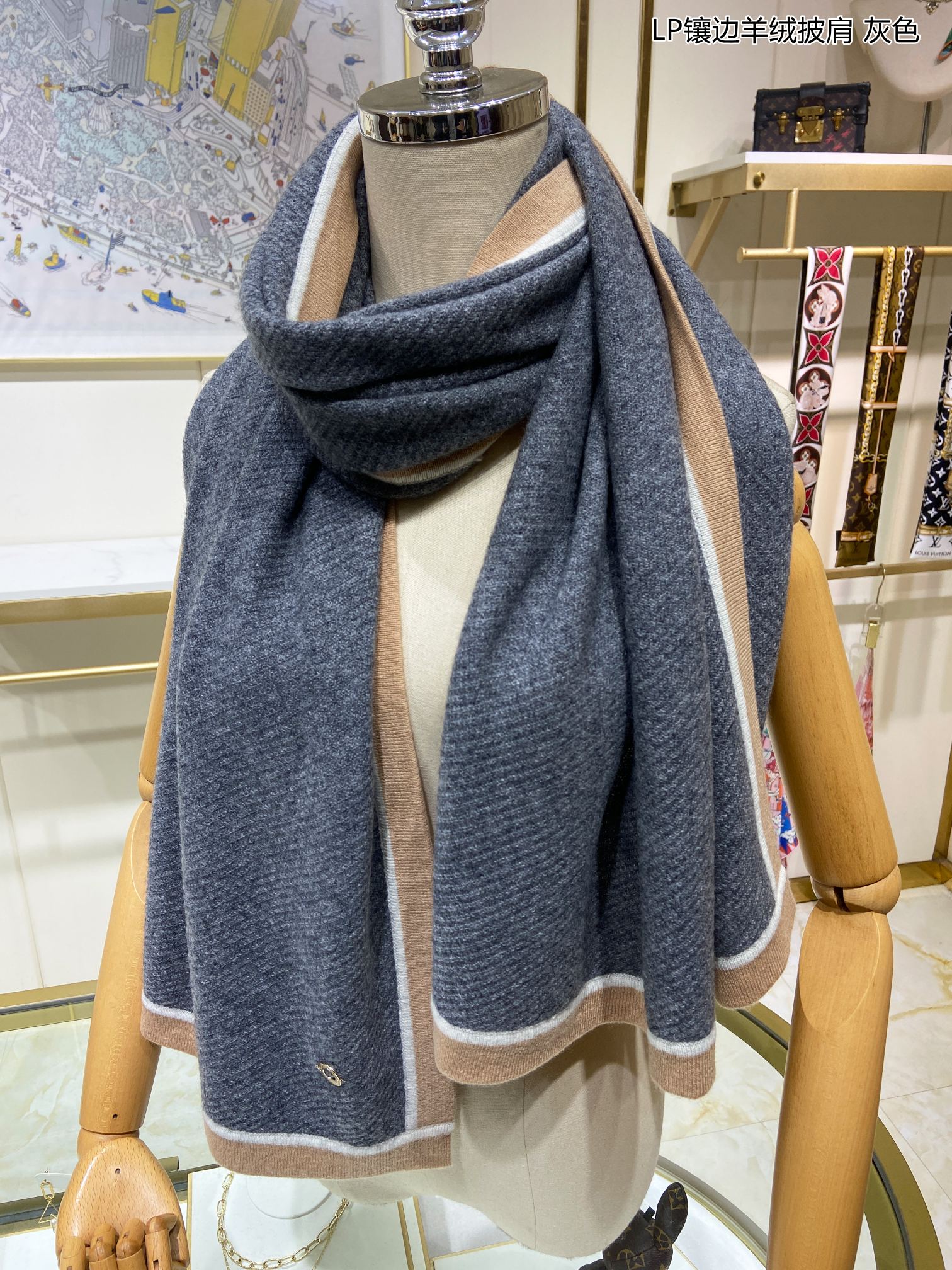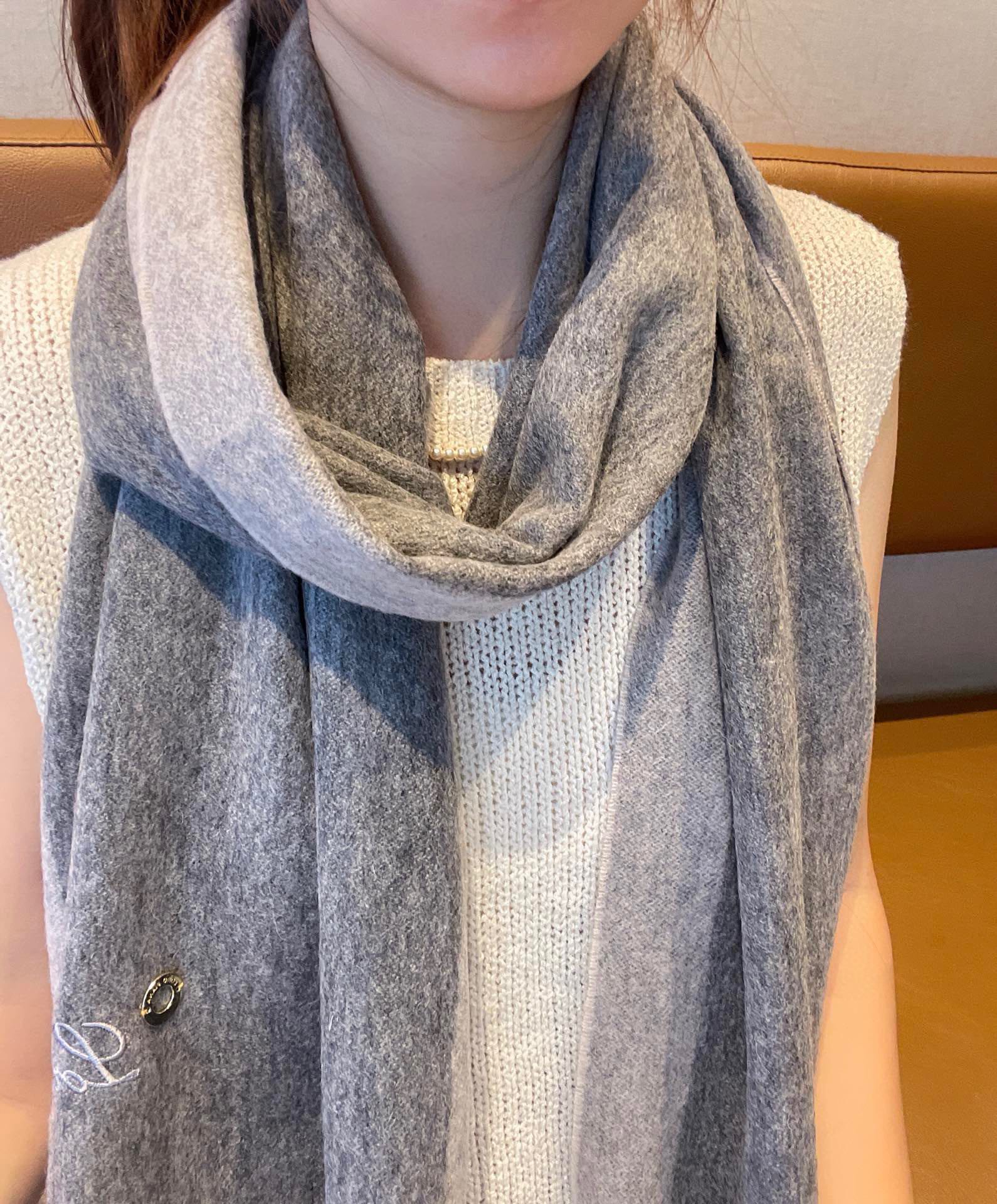 LP Pearl Button Scarf 135 CM In Grey White Cashmere 416913