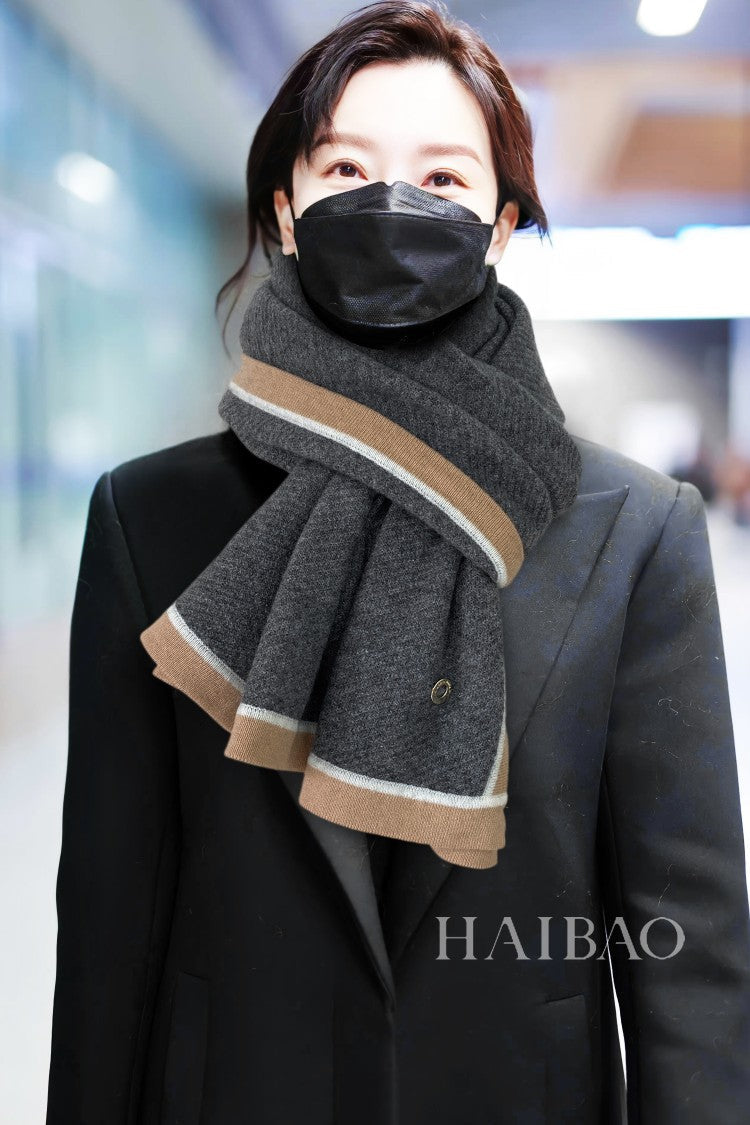 LP Scarf 170 CM In Dark Grey Blue Mix Brown Consinee Cashmere 205598