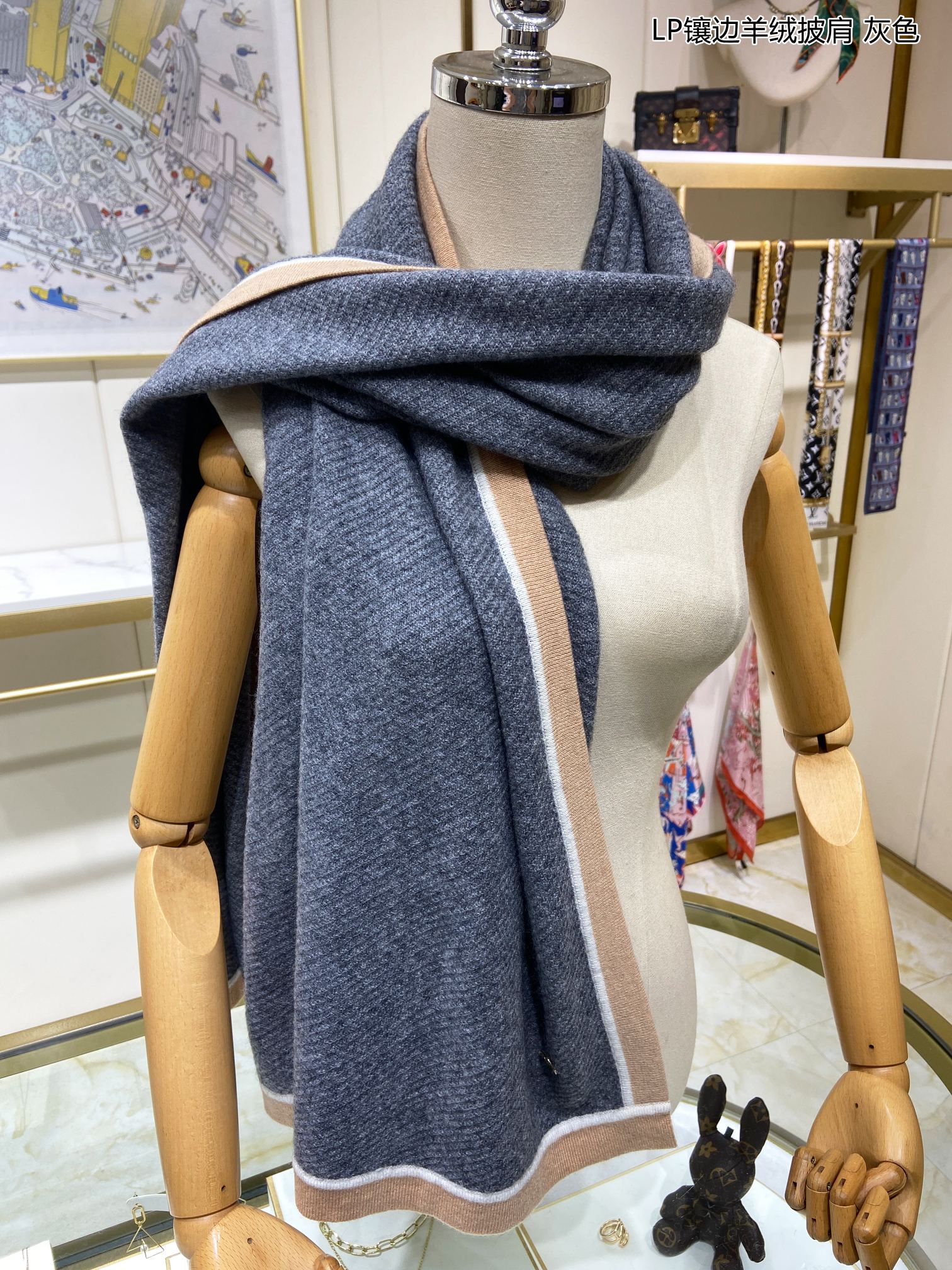 LP Grande Unita Scarf 200 CM In Grey Brown Cashmere 645519
