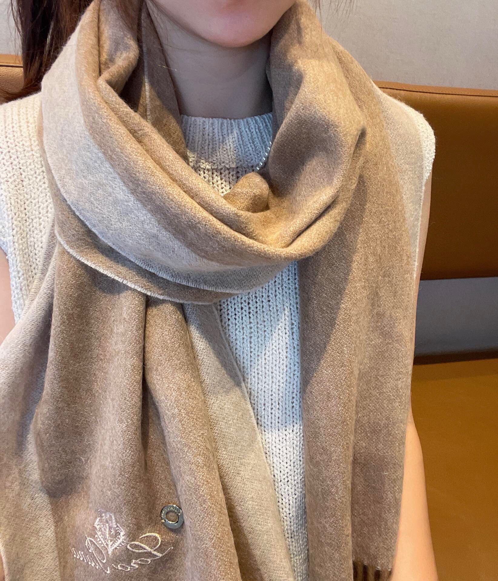 LP Scarf 190 CM In Beige White Mix Grey Brown Cashmere 649677