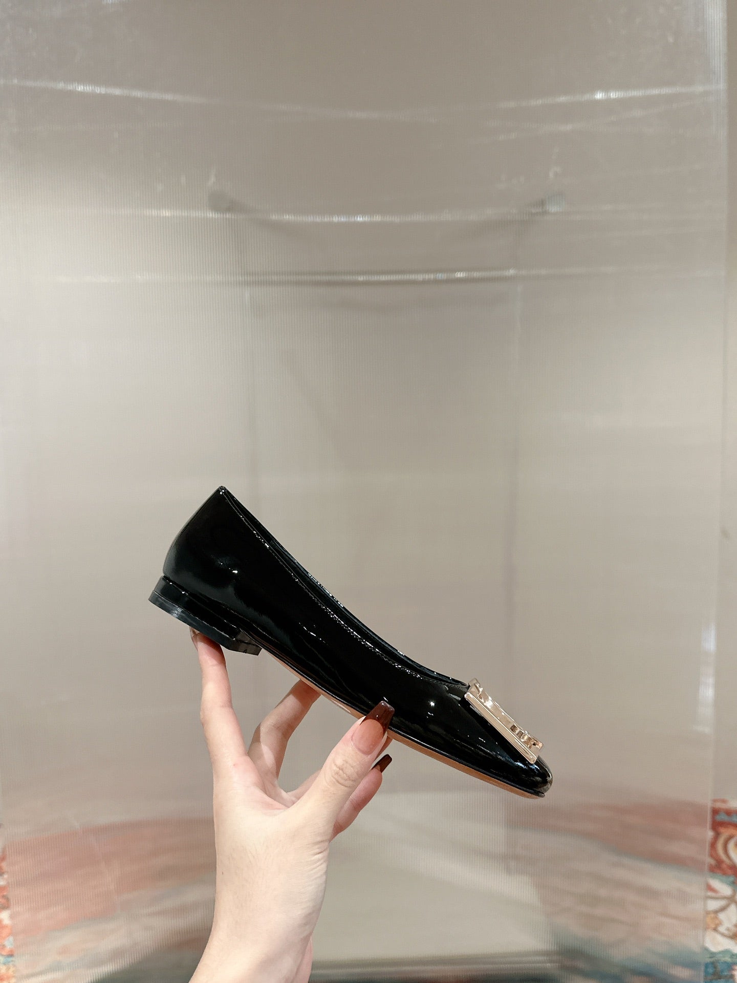 LV 25C Romy Flat Red Patent calf leather With gold logo 218306