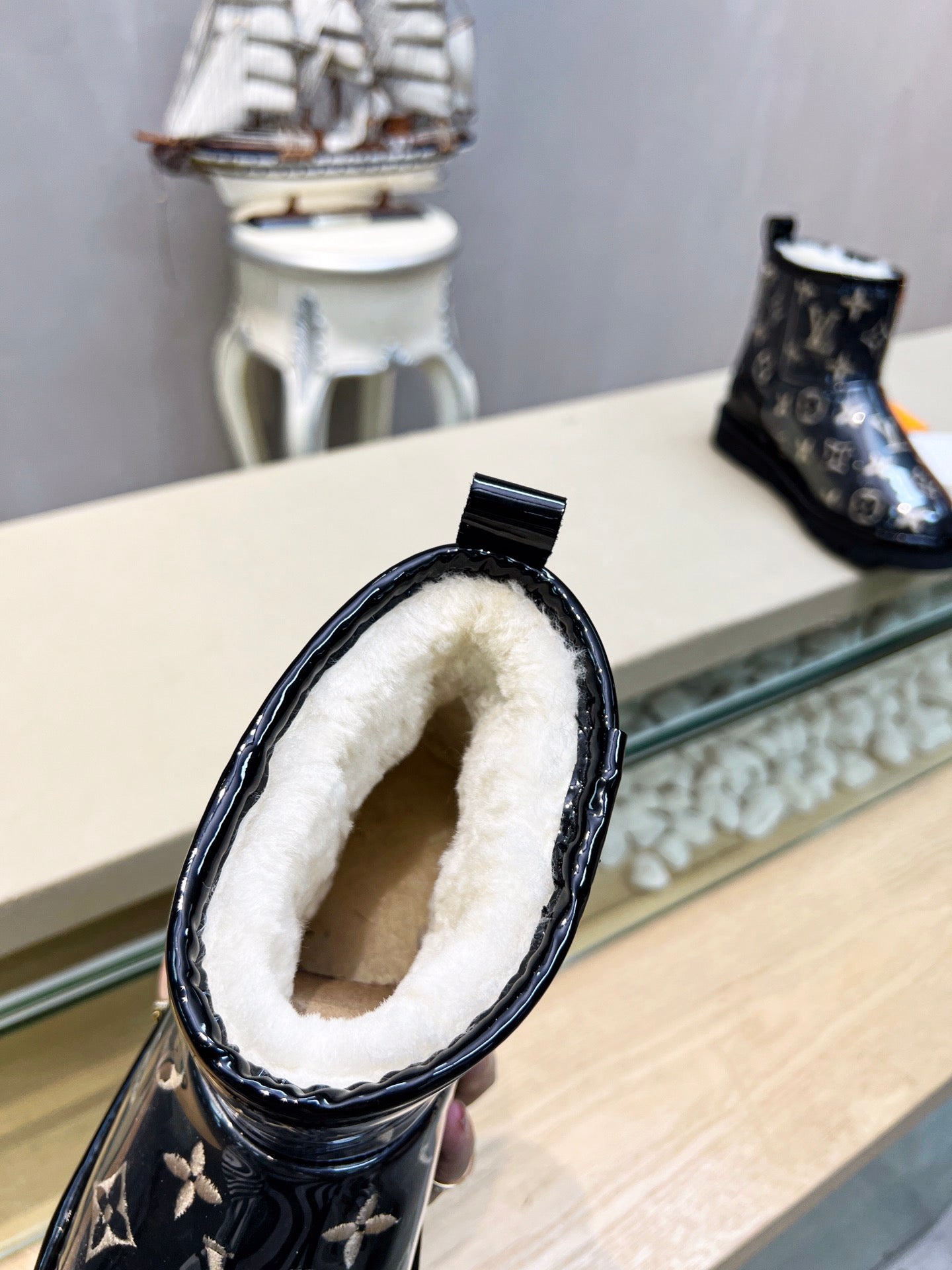 LV 25 Snow Boots Black Scratch-Resistant PVC Wool 576230