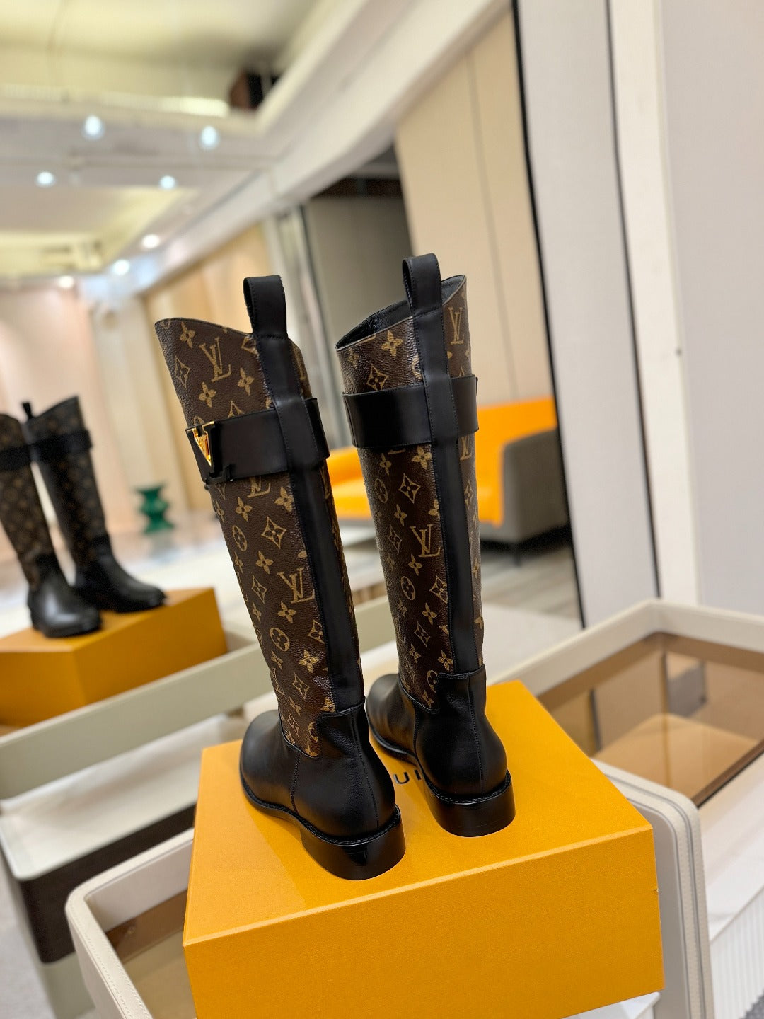 LV 25 Metal Buckle Riding Boots Black Sheepskin 573888