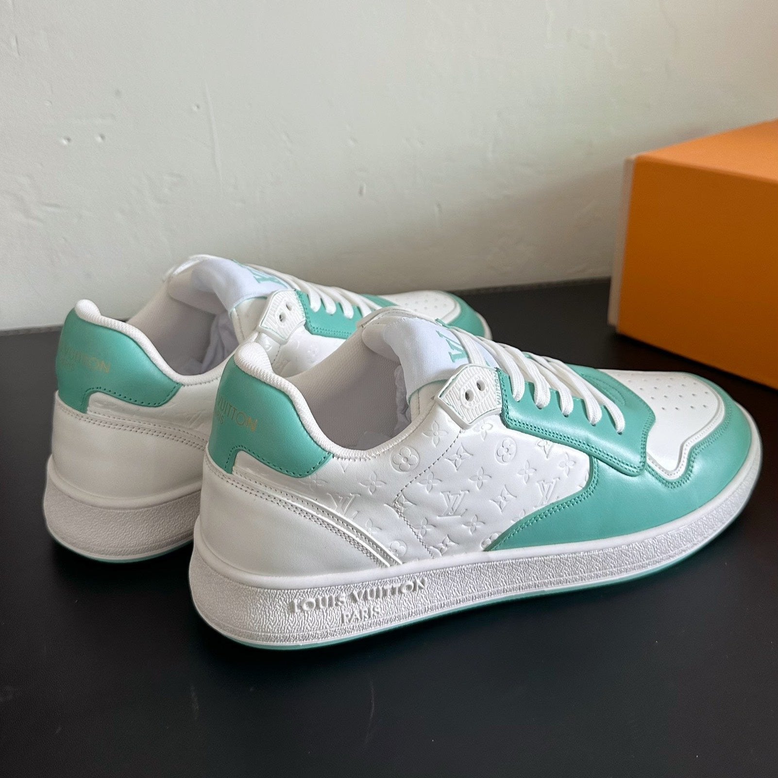 LV Stadium Sneaker White Mix Aqua Green Monogram Cowhide