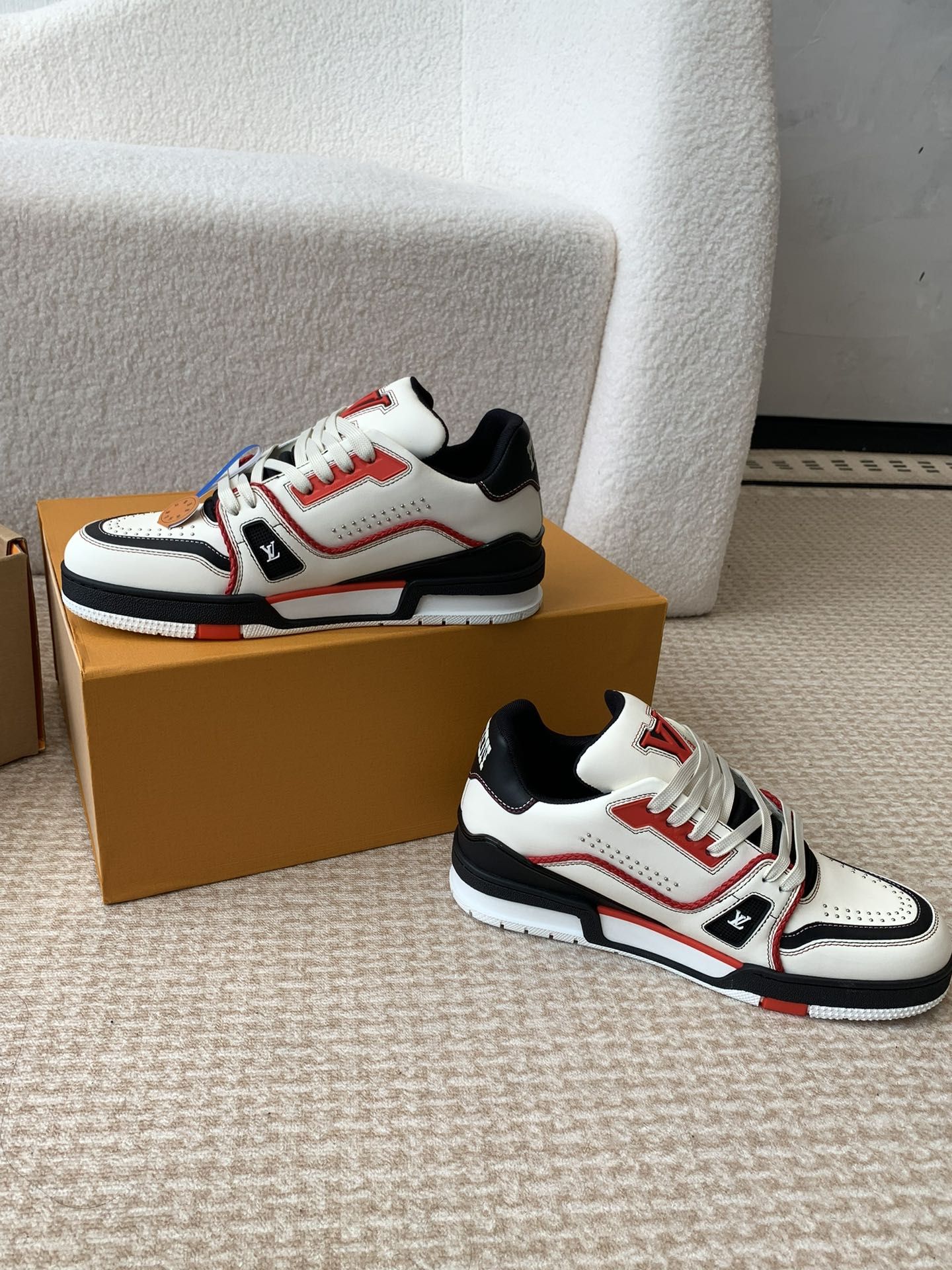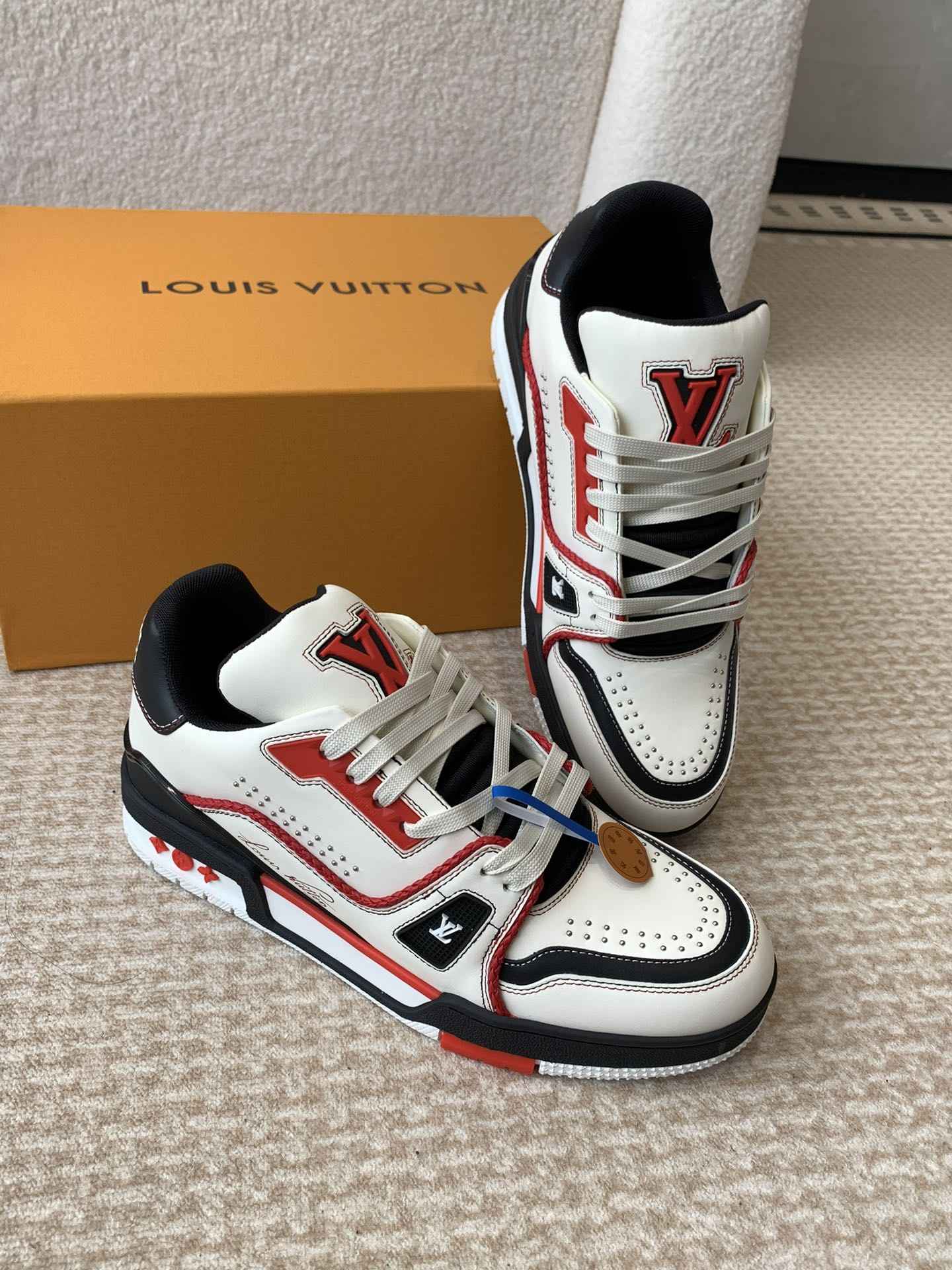 LV Trainer Sneaker White Mix Red Black Cowhide