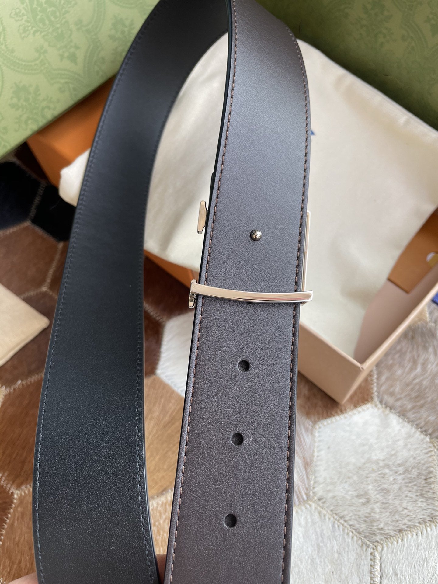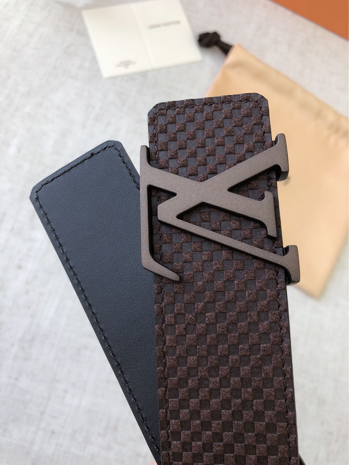 LV 40MM REVERSIBLE BELT SILVER BUCKLE BLACK CHOCOLATE LEATHER