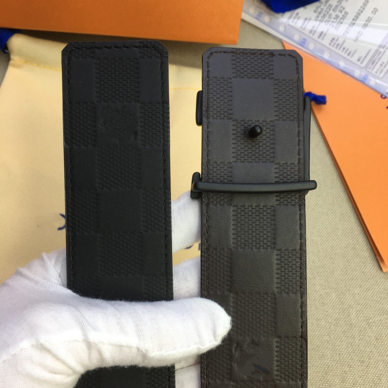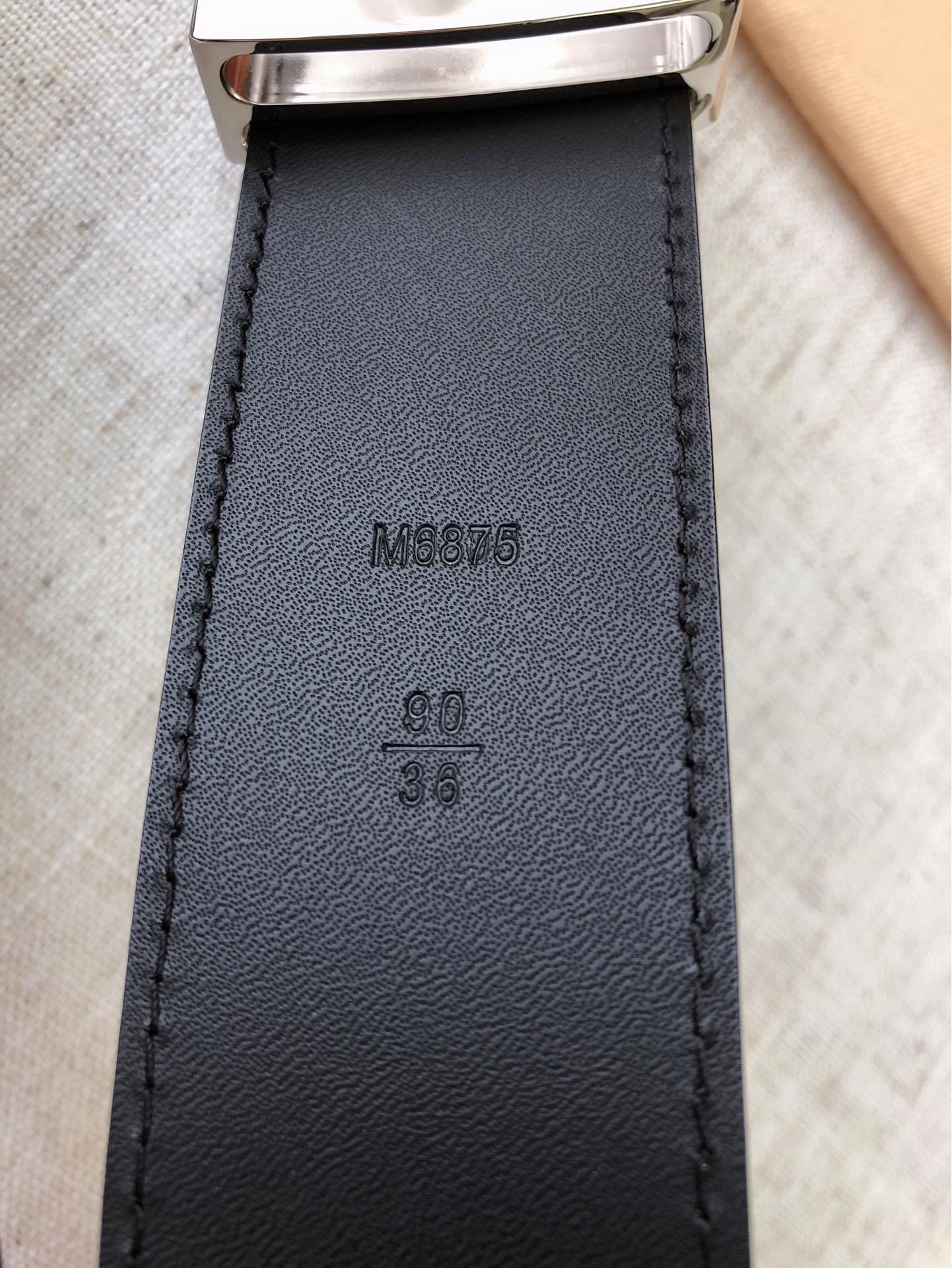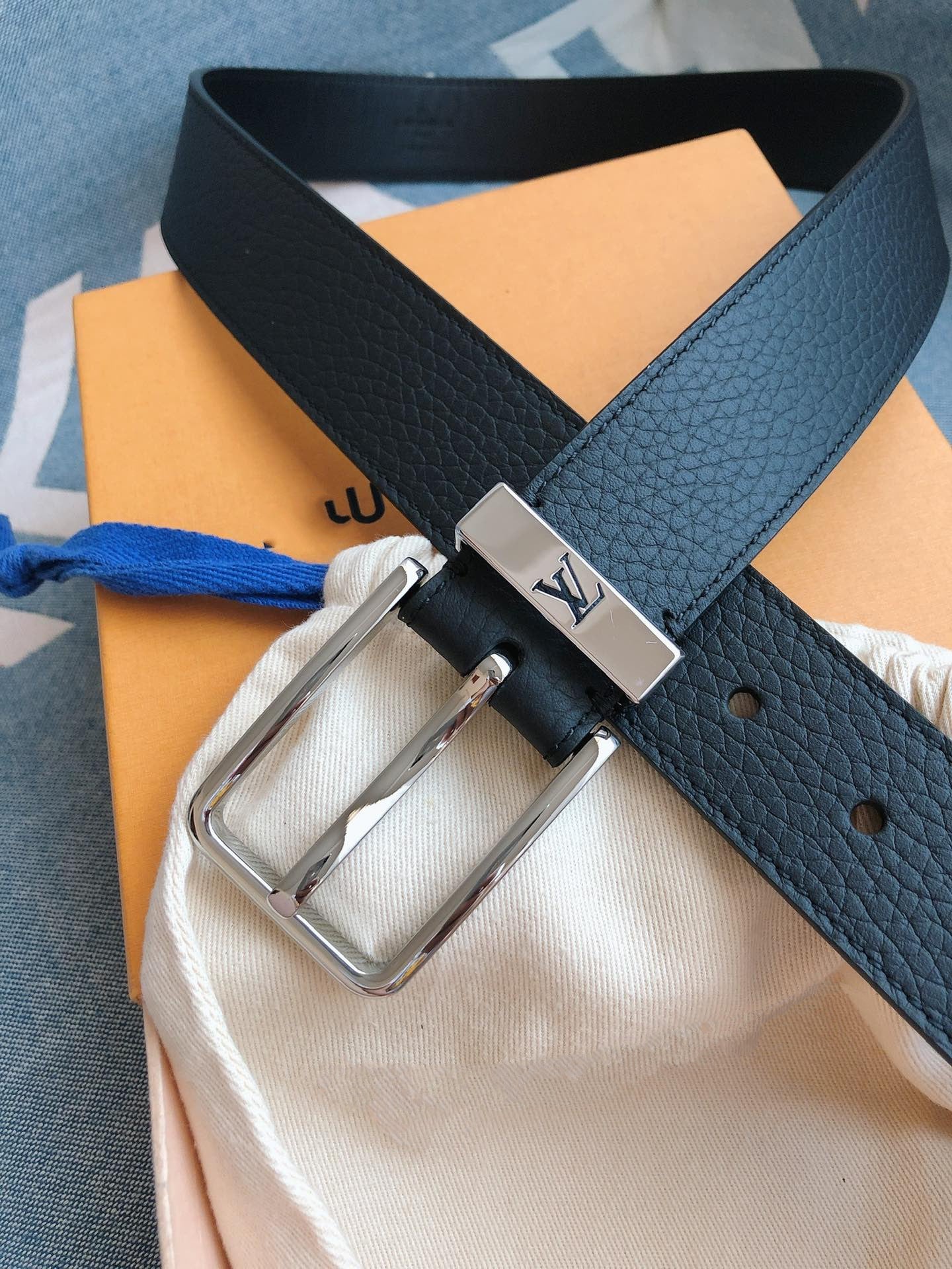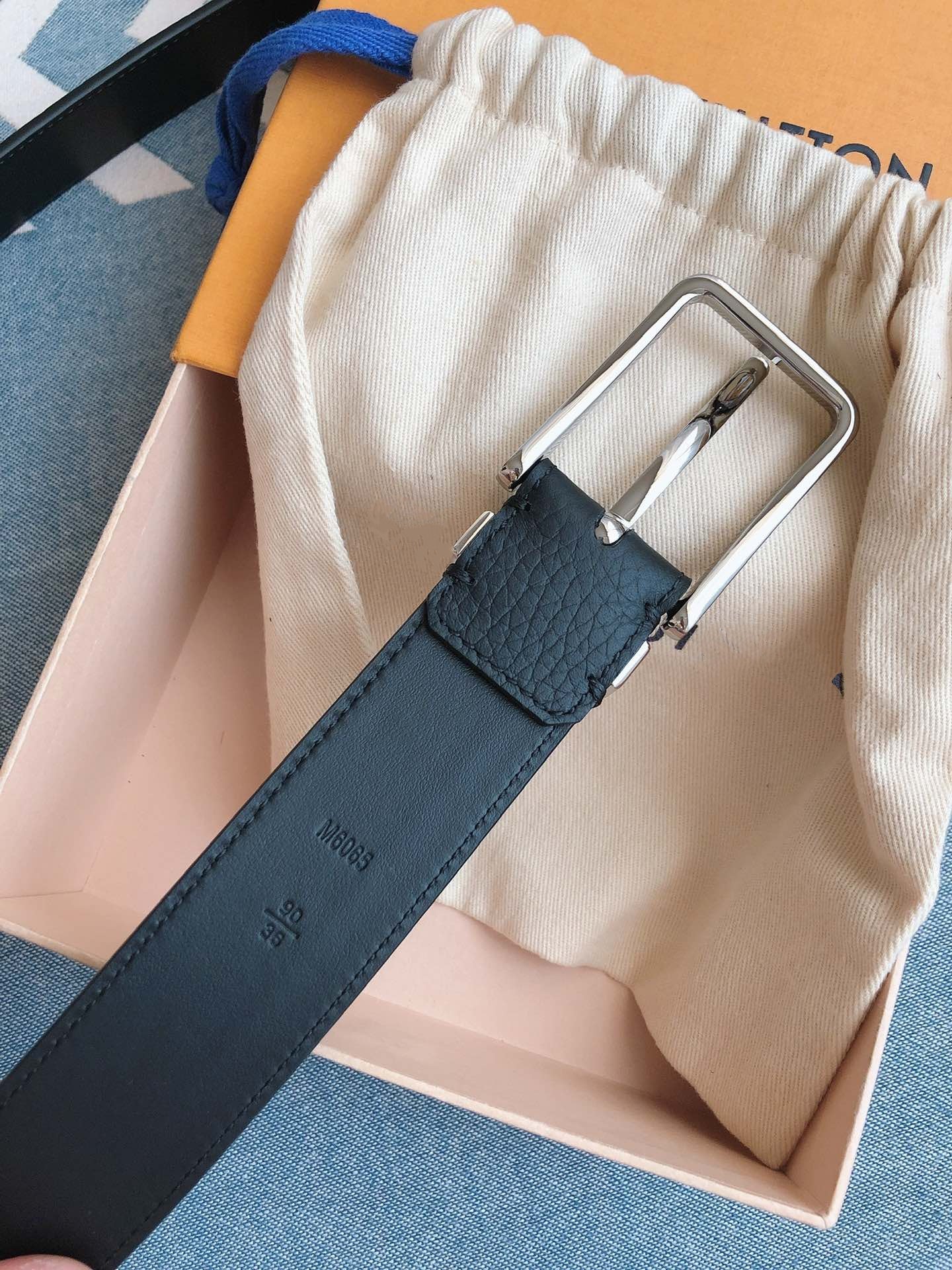 LV MEN'S BELT SQUARE BUCKLE INSTALL BLACK LEATHER 35MM