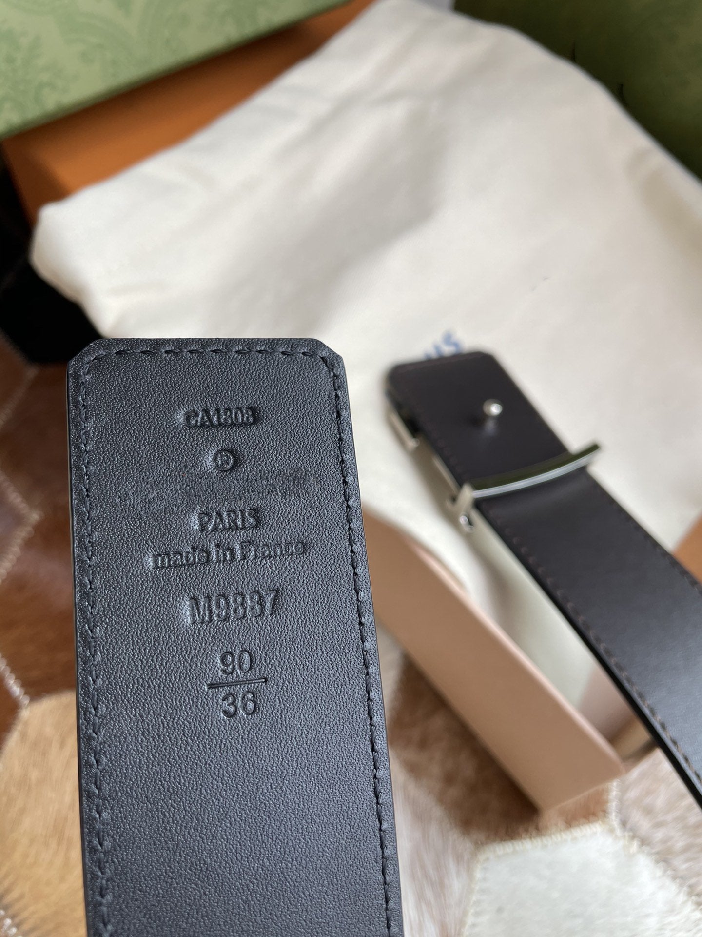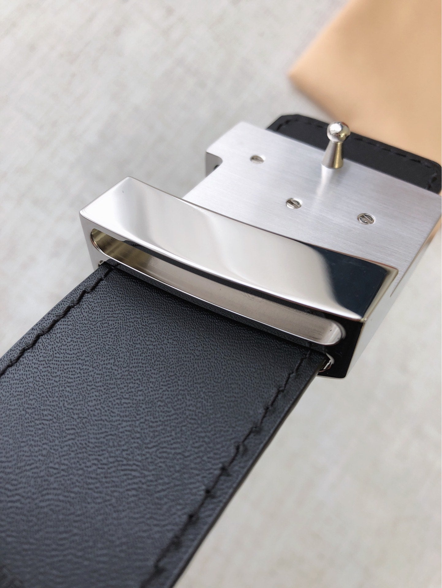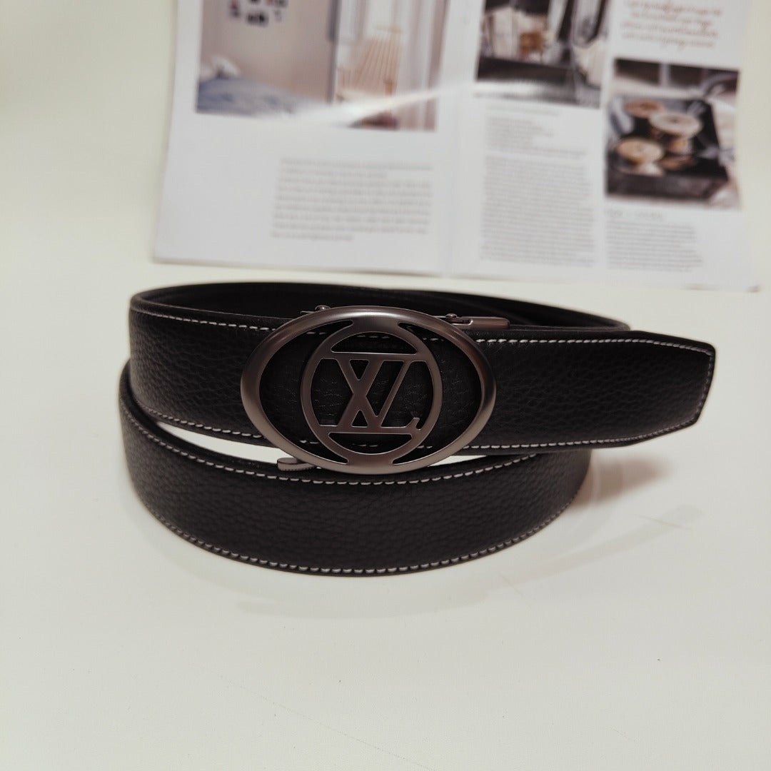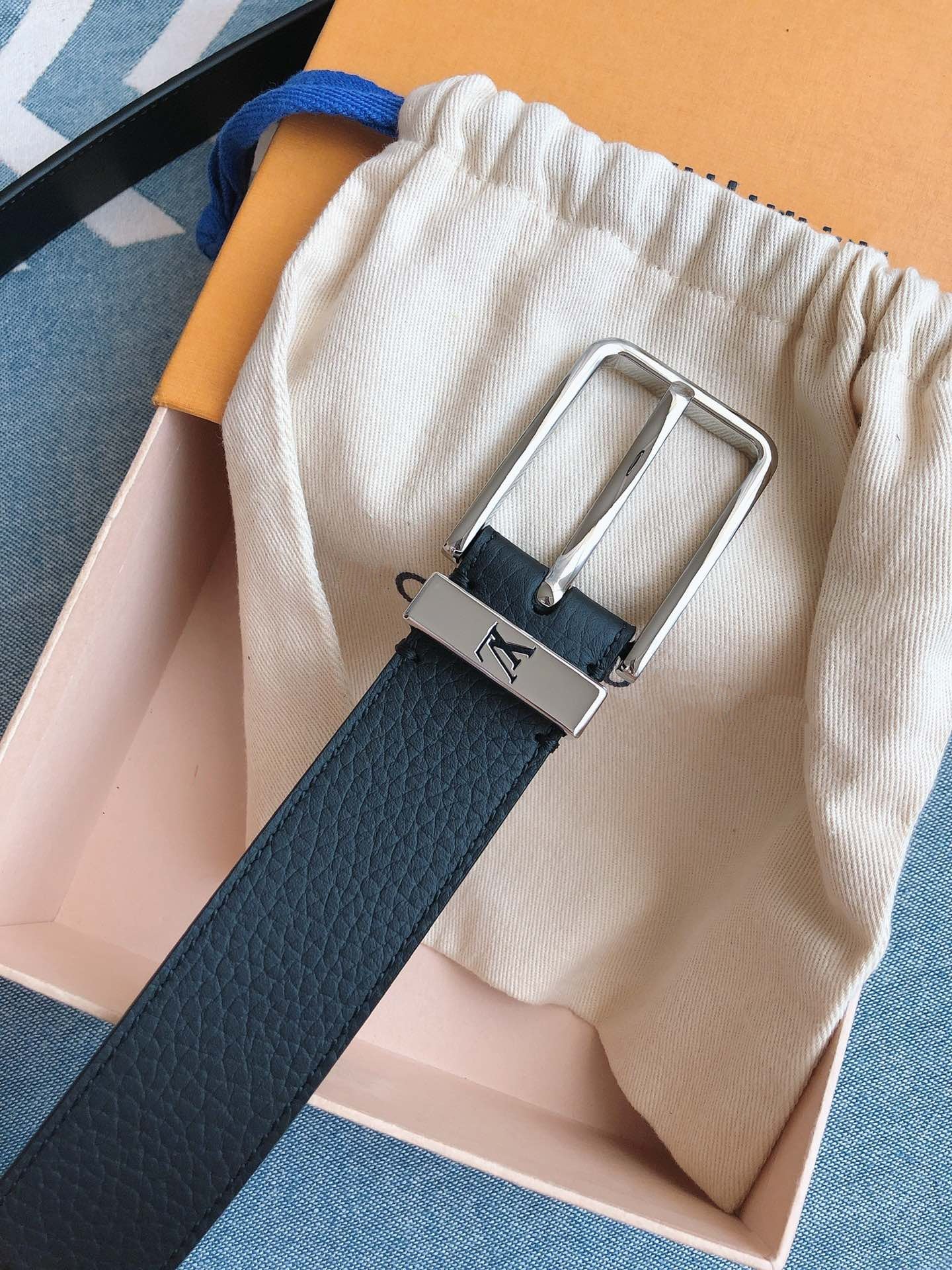 LV MEN'S BELT SQUARE BUCKLE INSTALL BLACK LEATHER 35MM