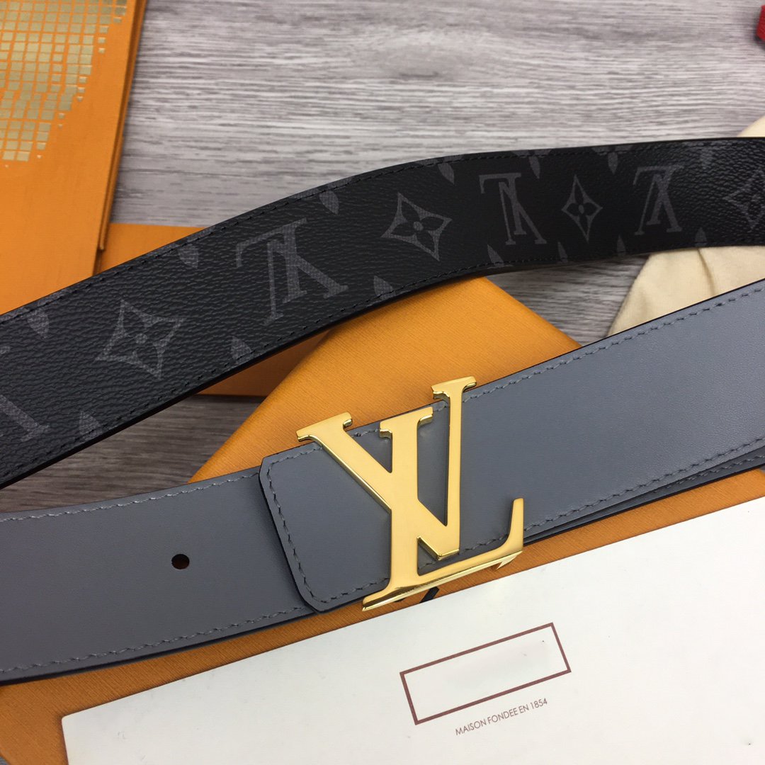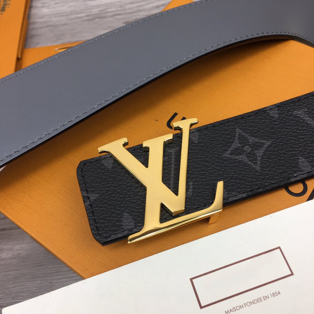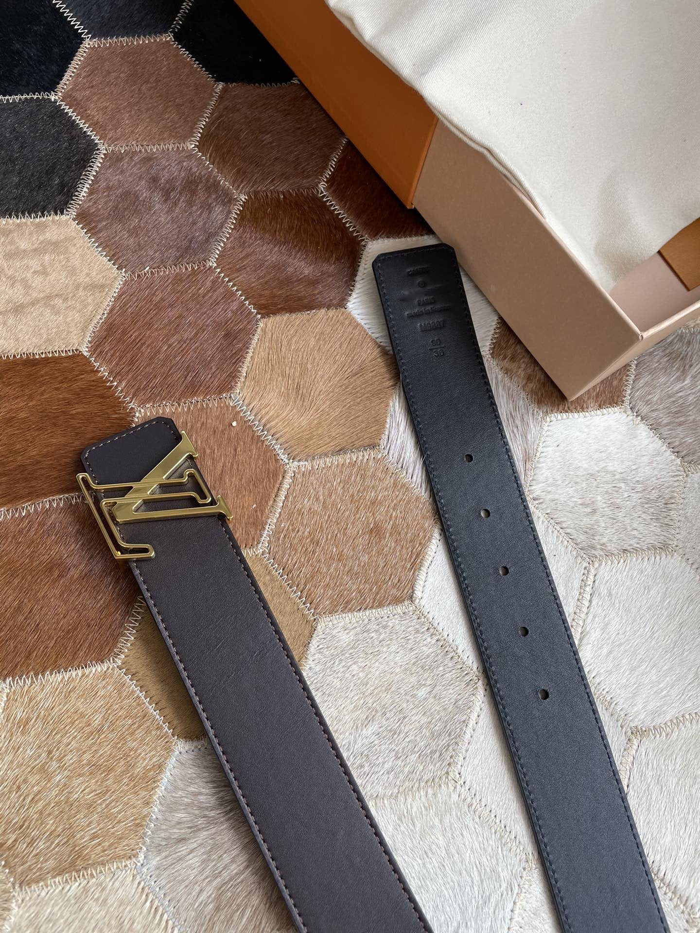 LV BELT GOLD BORDER BUCKLE BLACK GREY LEATHER 40MM