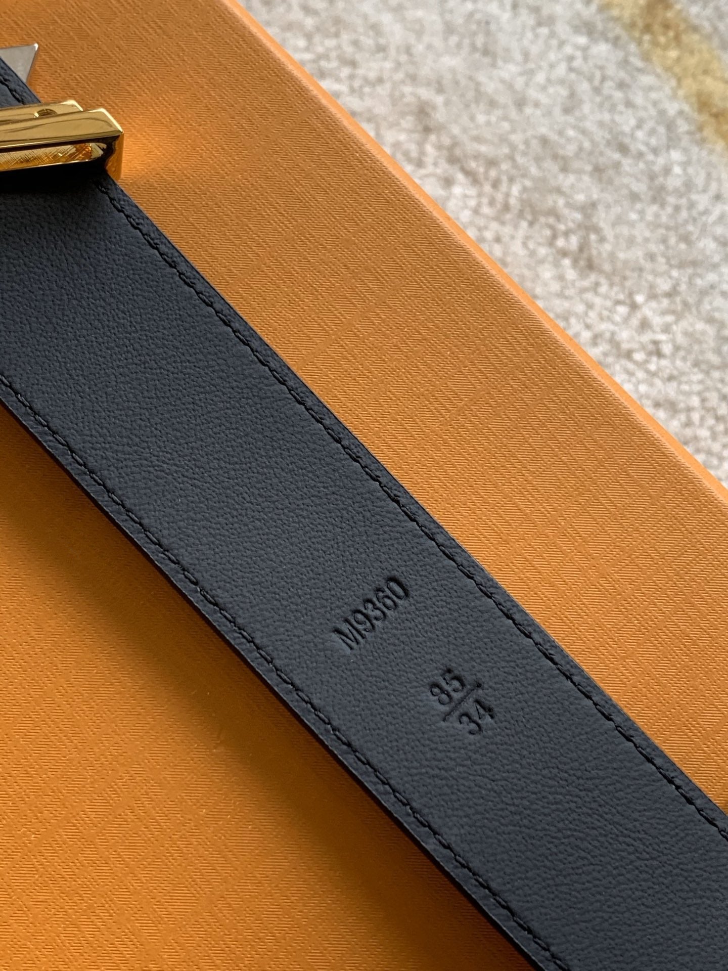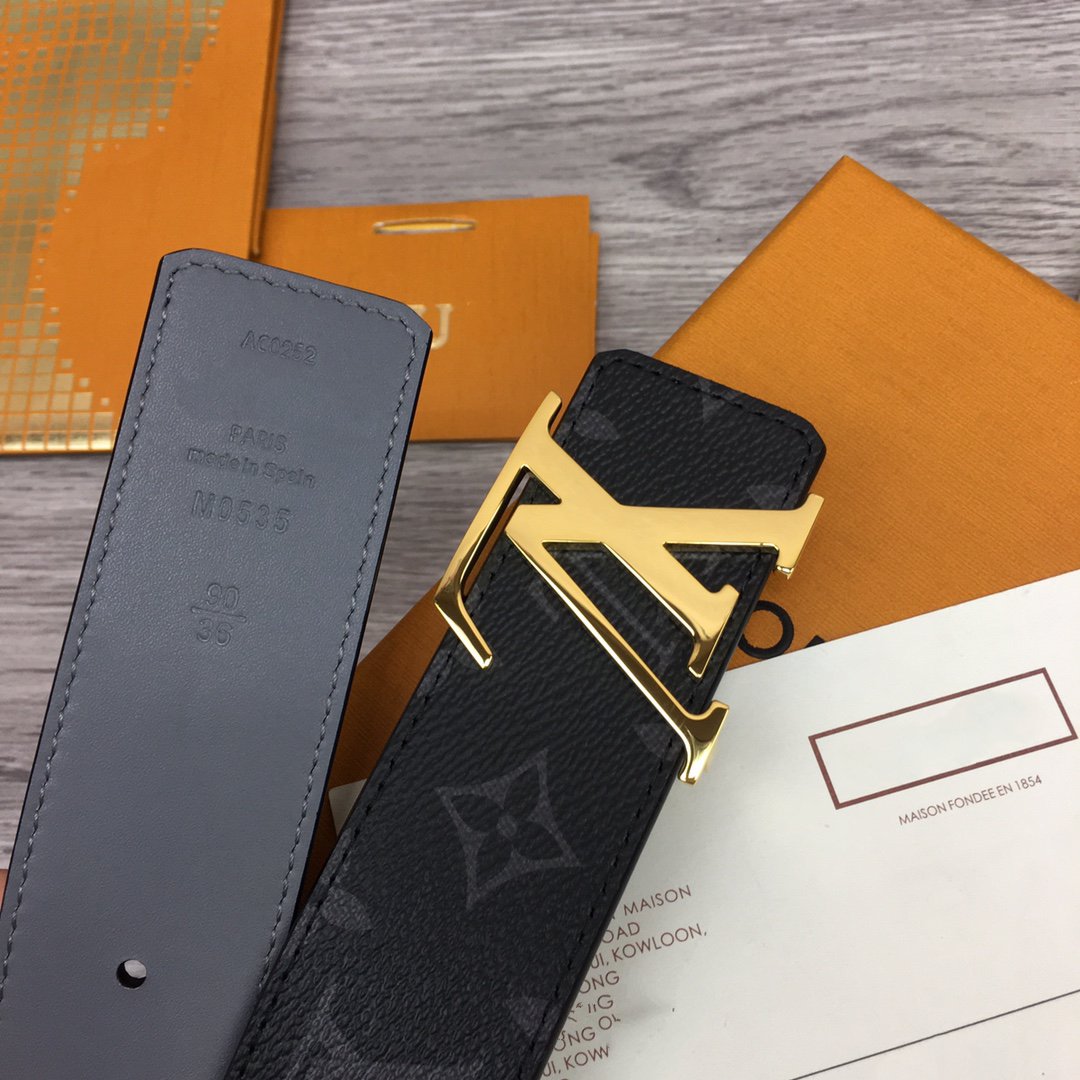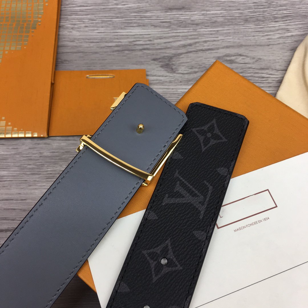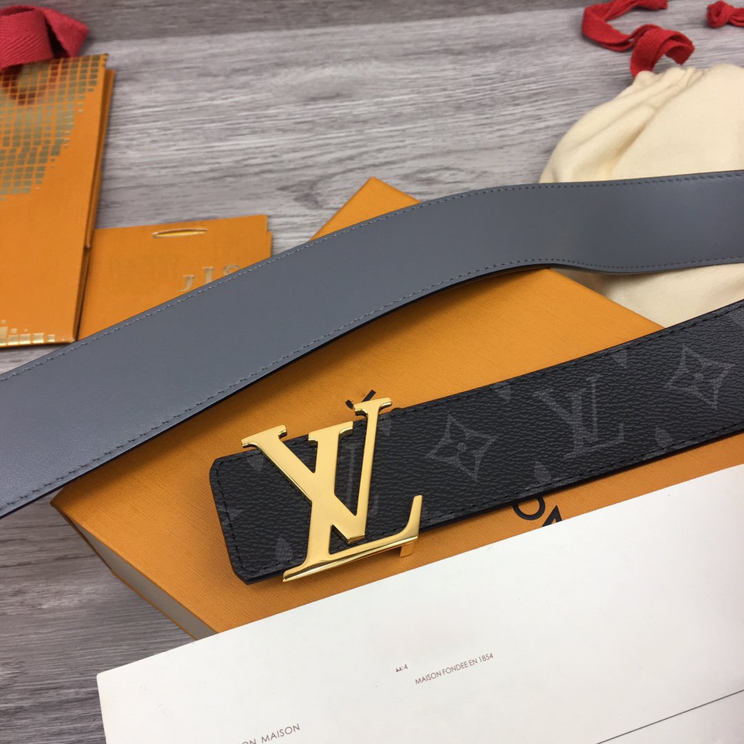 LV BELT GOLD BORDER BUCKLE BLACK GREY LEATHER 40MM