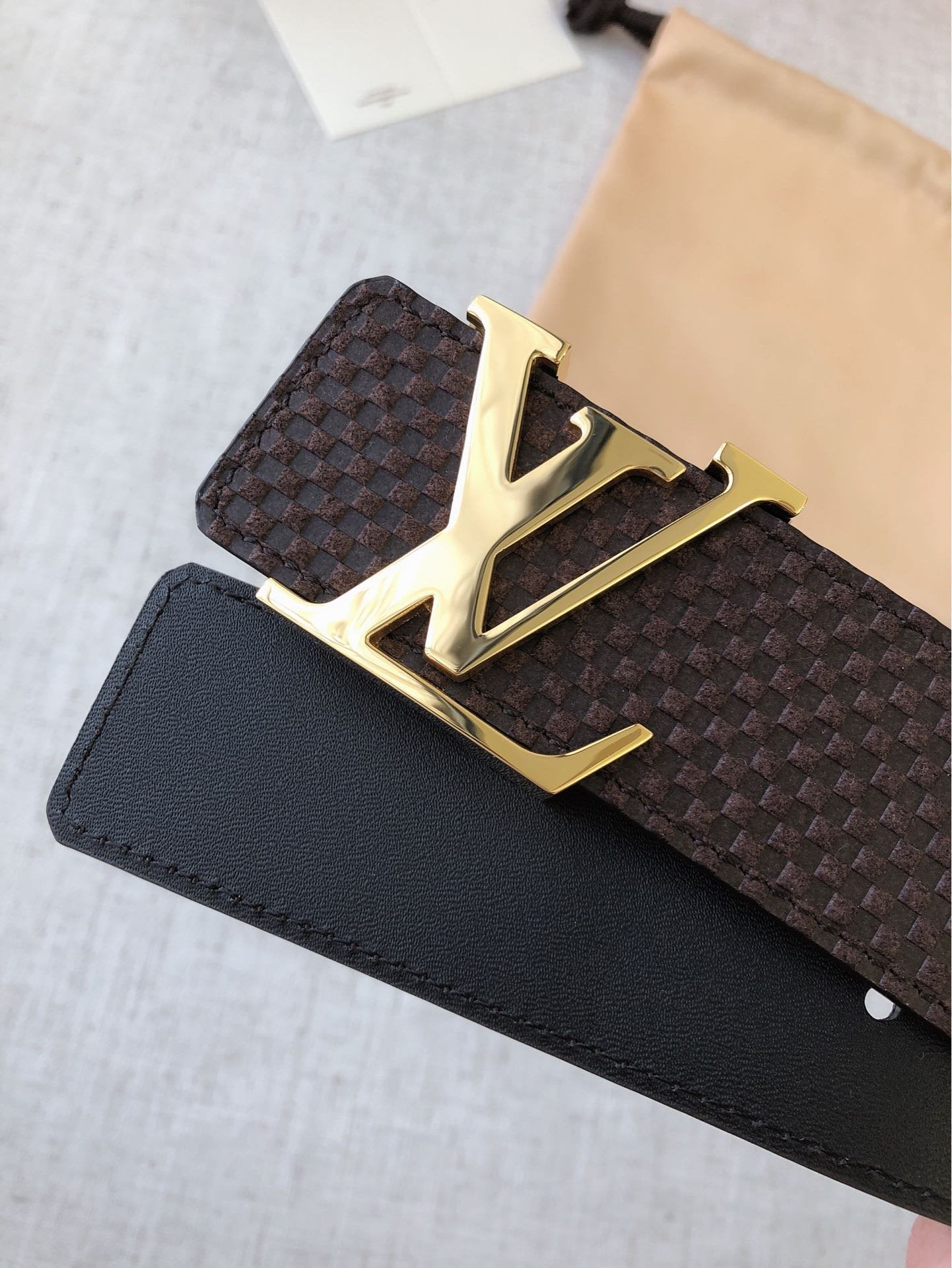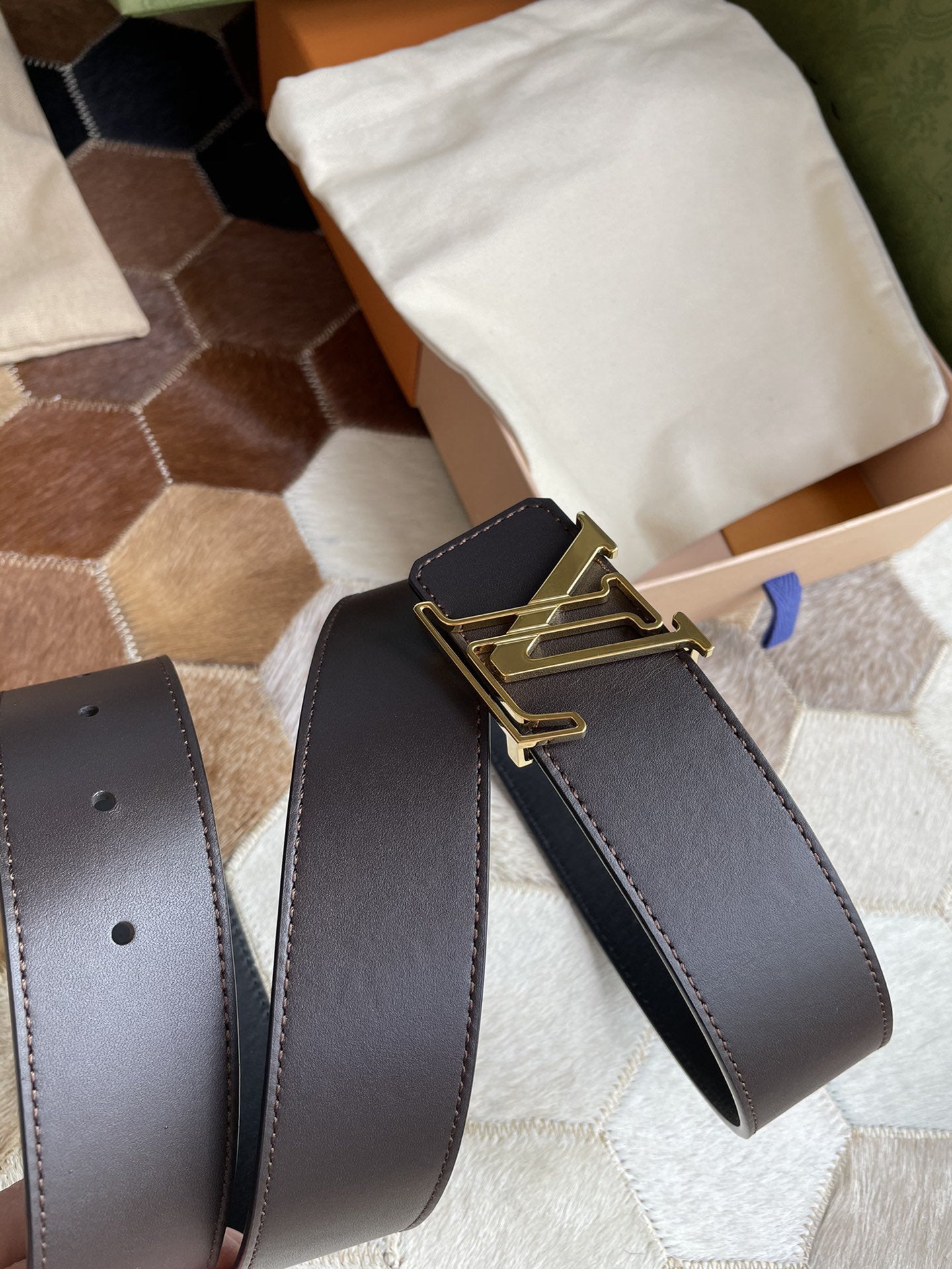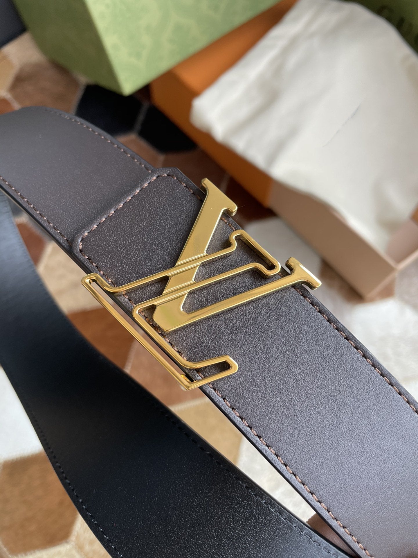 LV 40MM REVERSIBLE BELT GOLD BUCKLE BLACK CHOCOLATE LEATHER