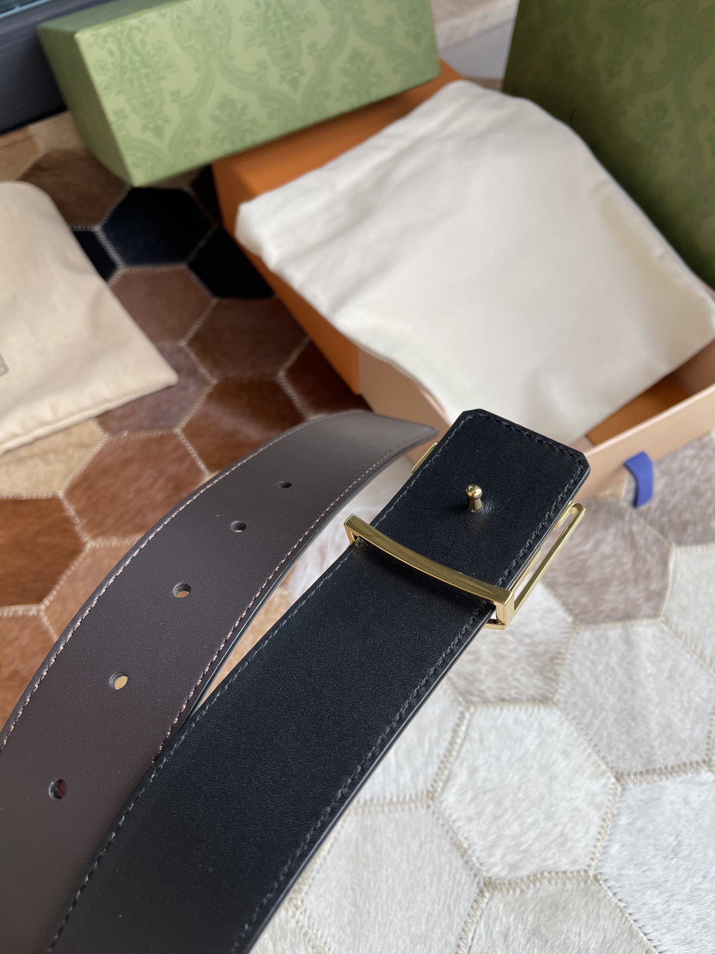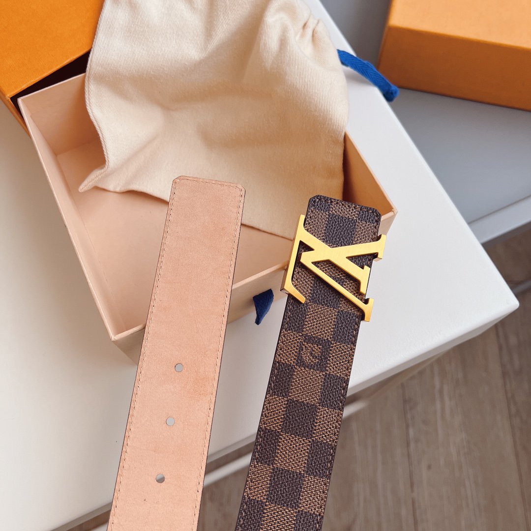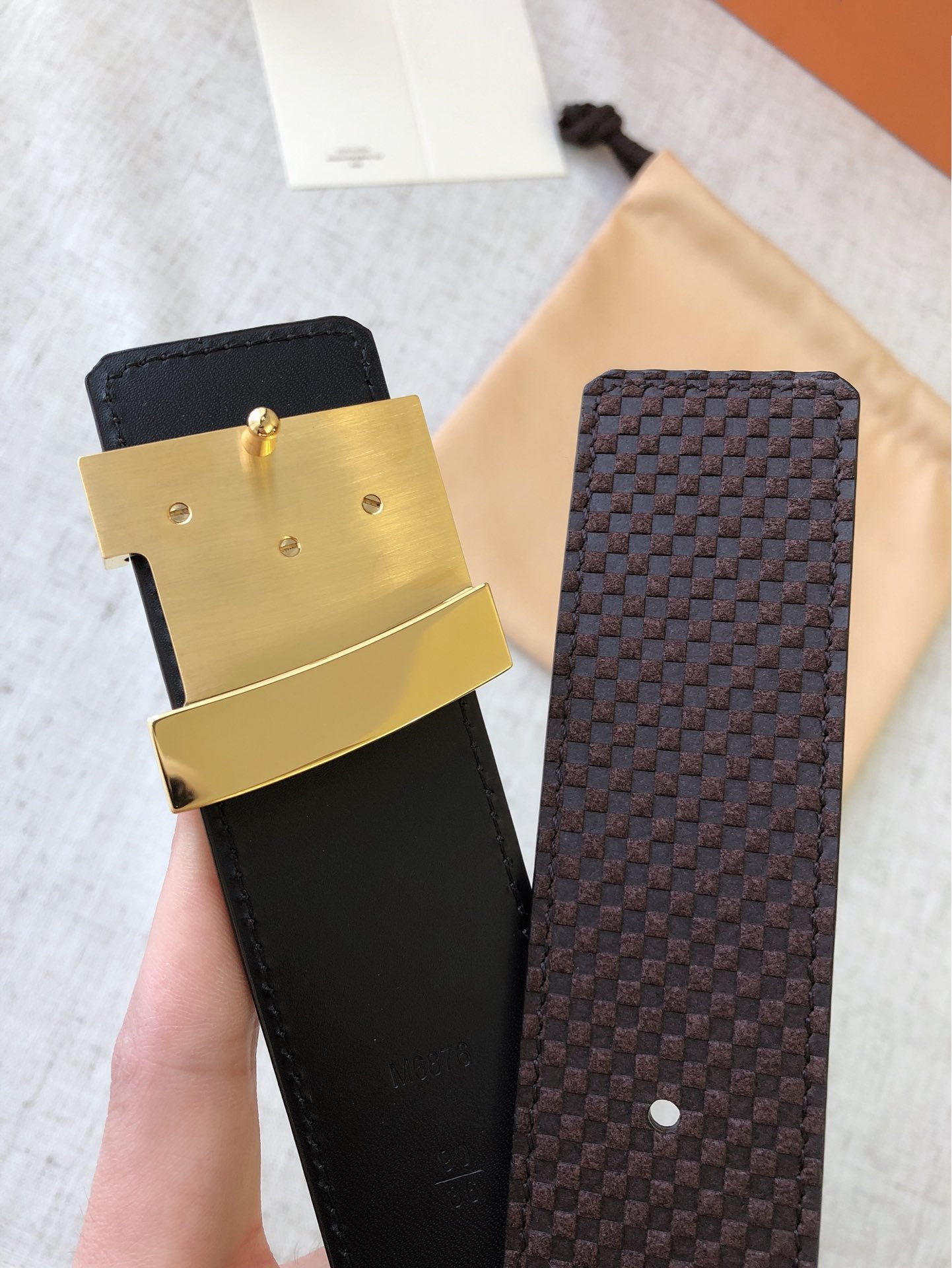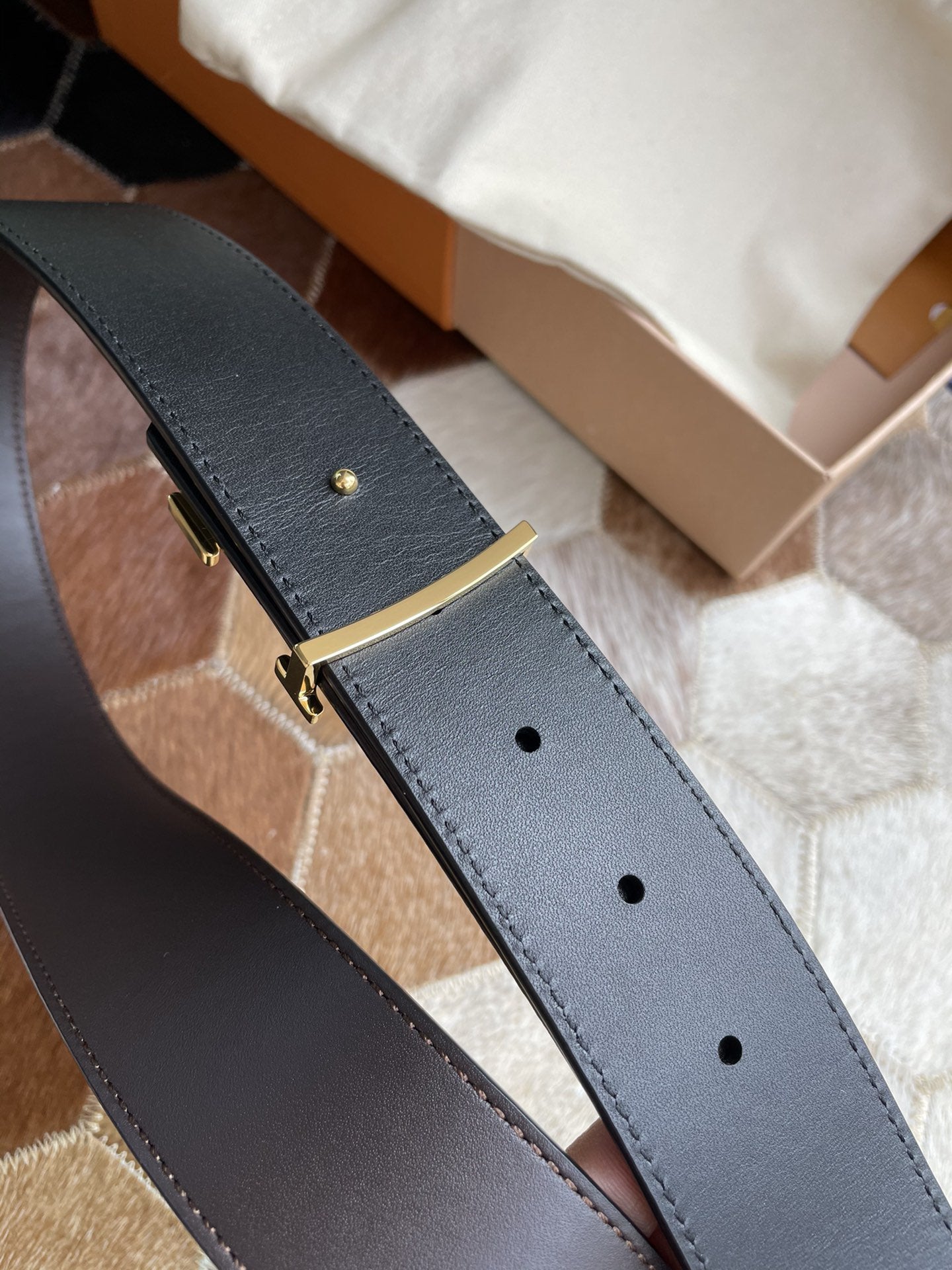 LV 40MM REVERSIBLE BELT GOLD BUCKLE BLACK CHOCOLATE LEATHER