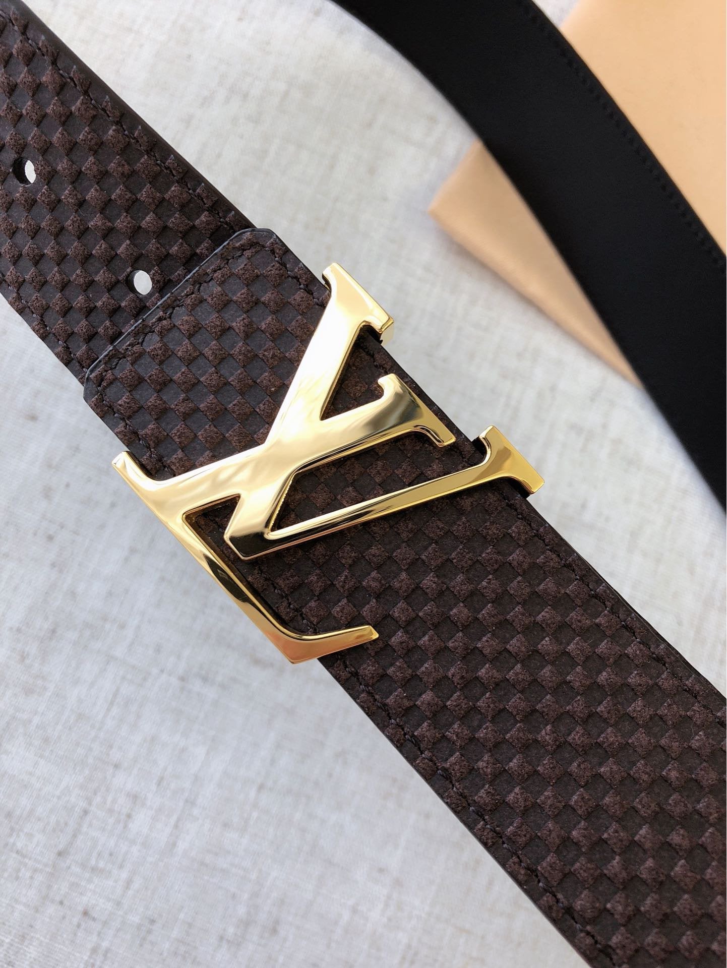 LV 40MM BELT GOLD BUCKLE EMBOSSED BROWN BLACK LEATHER