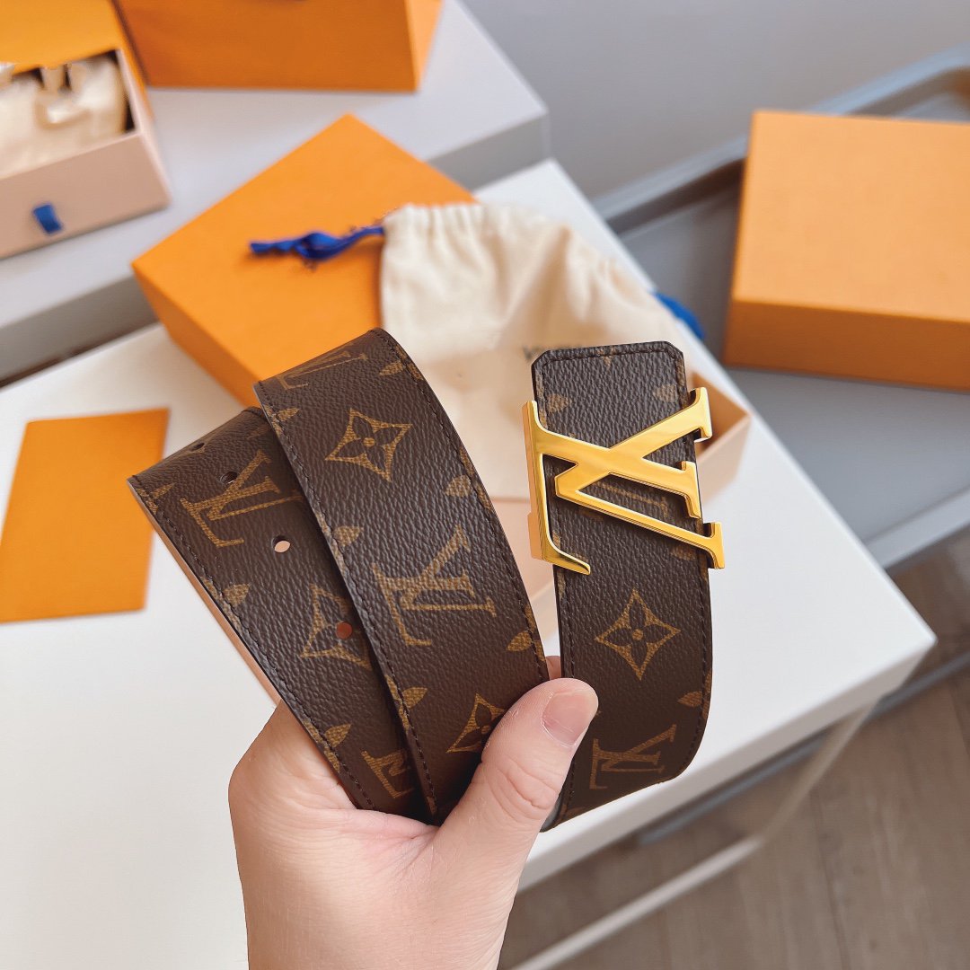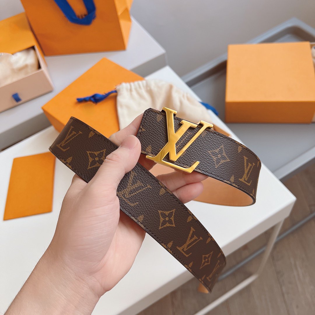 LV BELT GOLD BUCKLE CLASSIC BROWN LEATHER 40MM