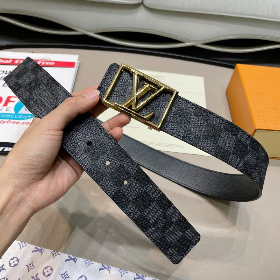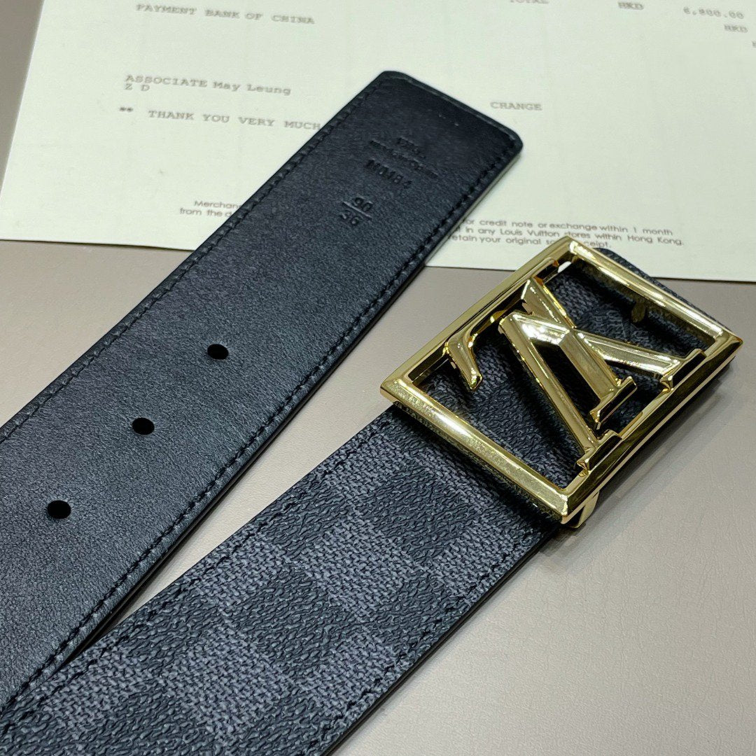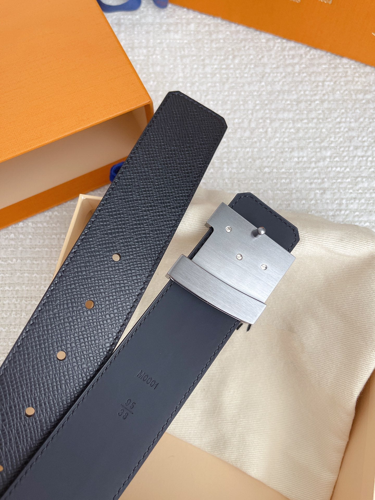 LV BELT BLACK BUCKLE SQUARE LEATHER 40MM