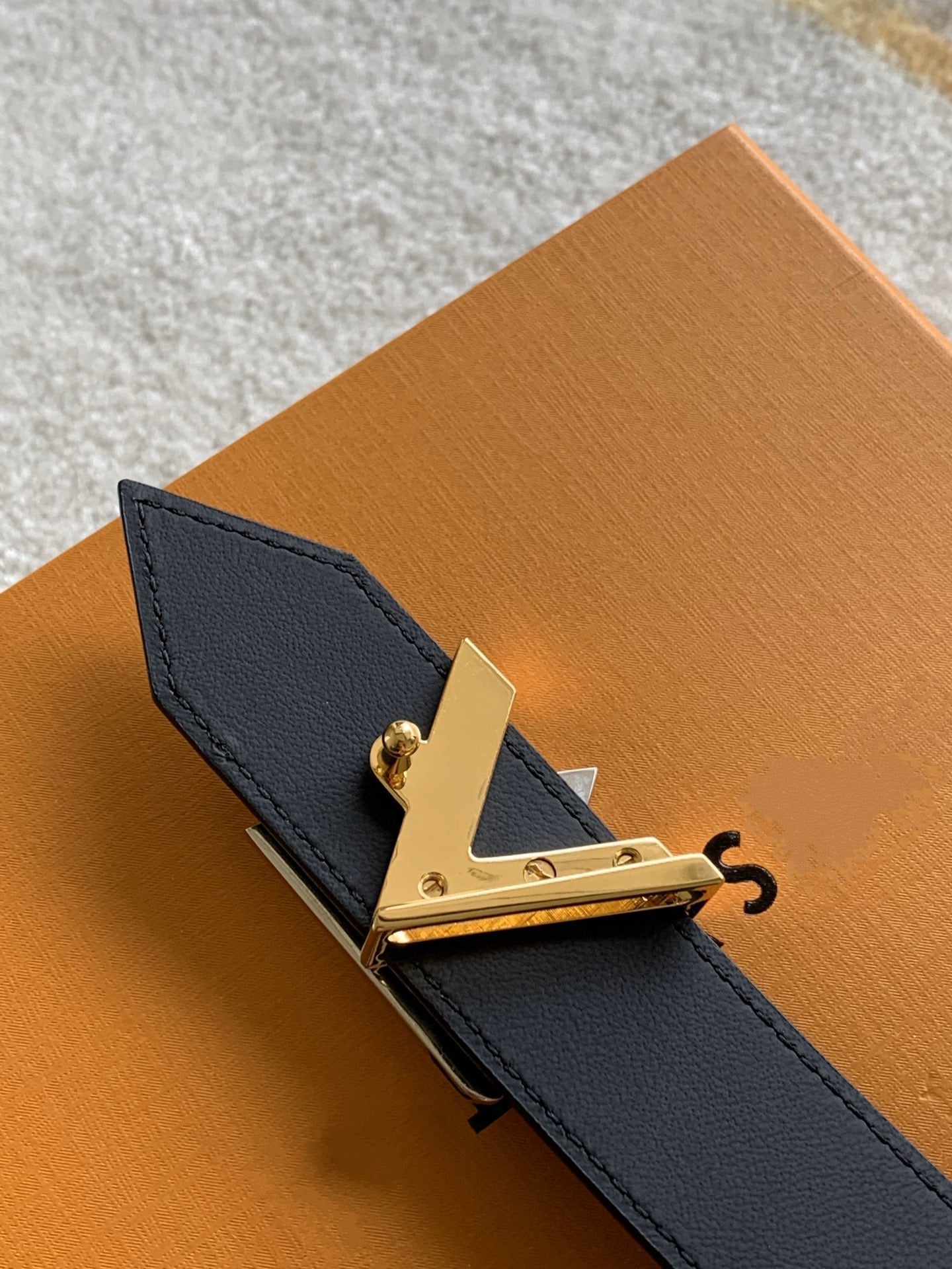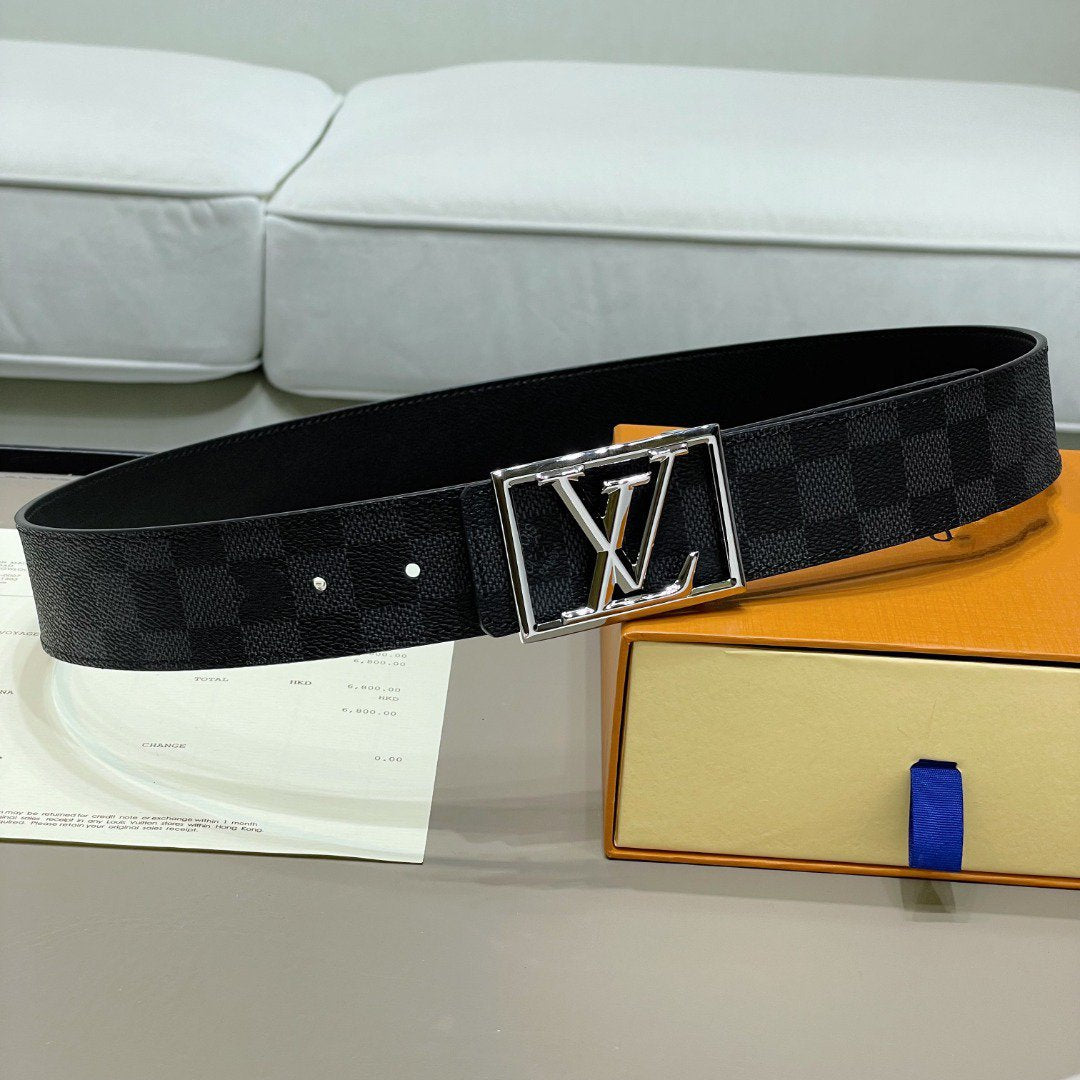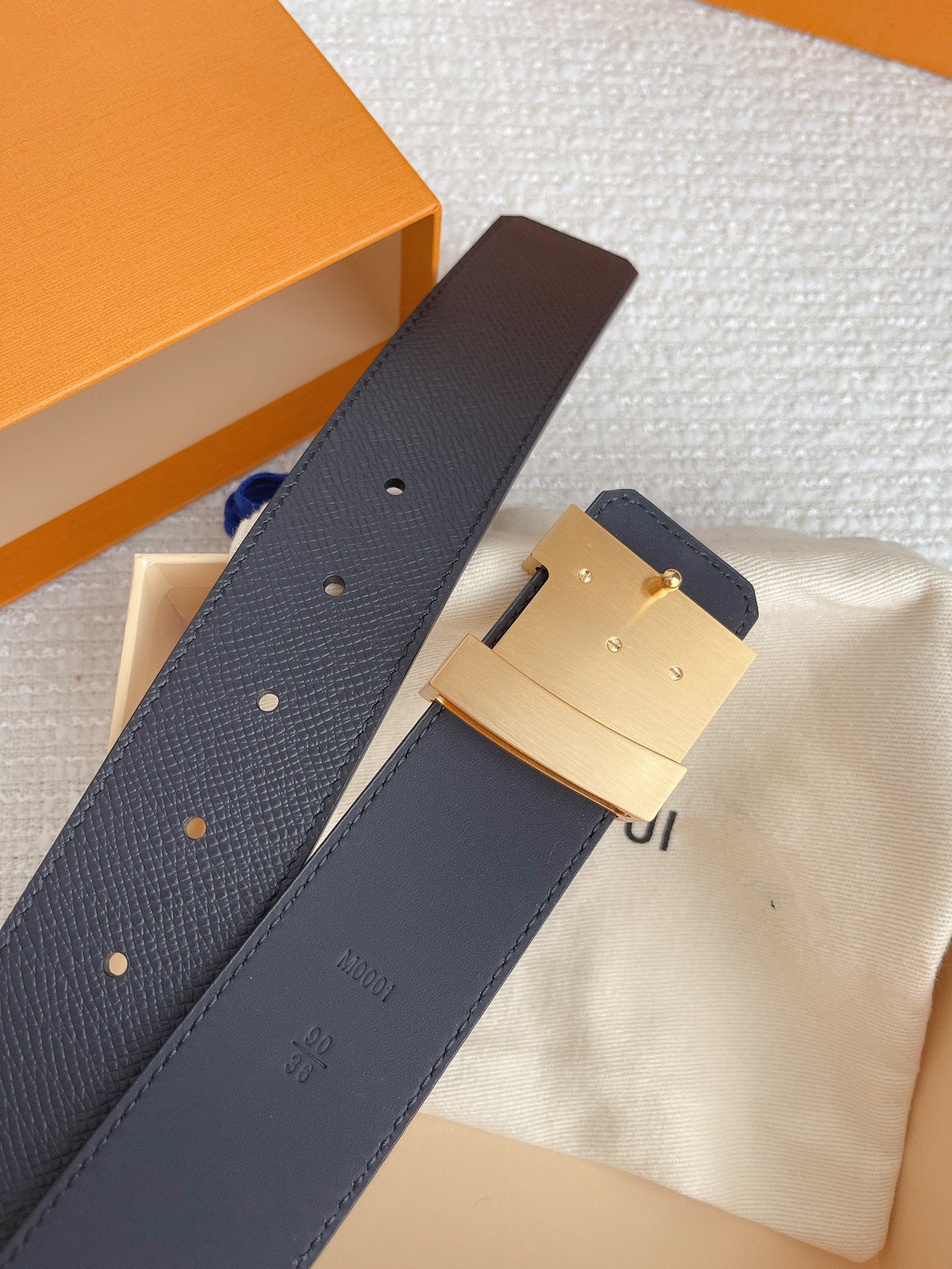 LV BELT BLACK BUCKLE SQUARE LEATHER 40MM
