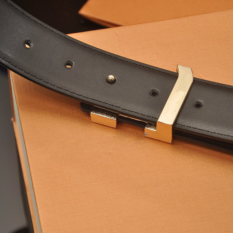 WOMEN'S LV BELT SILVER BUCKLE BLACK LEATHER 30MM
