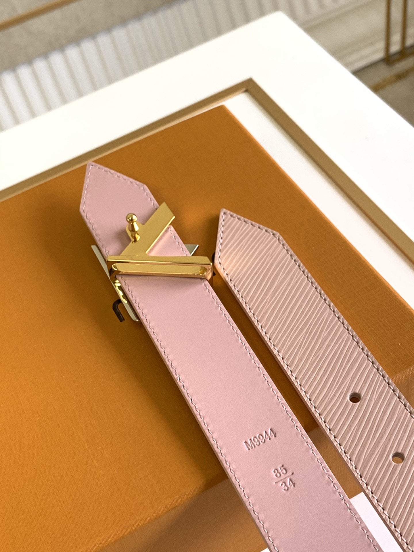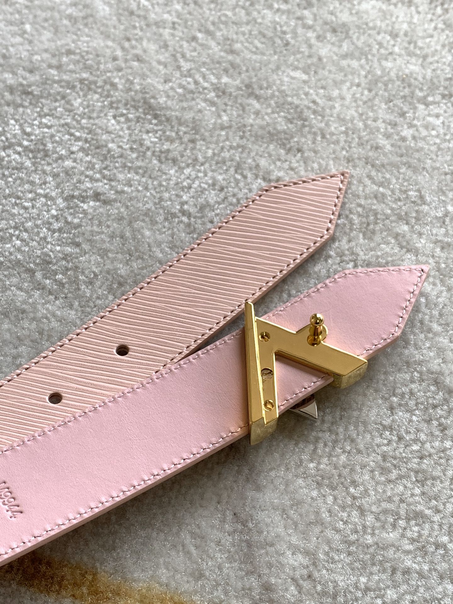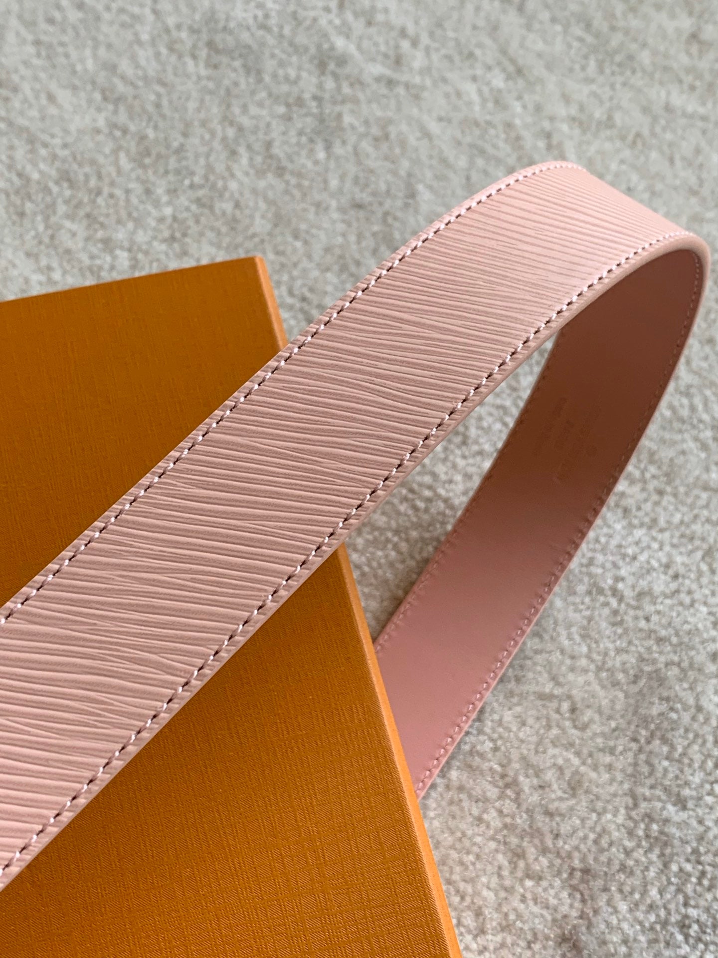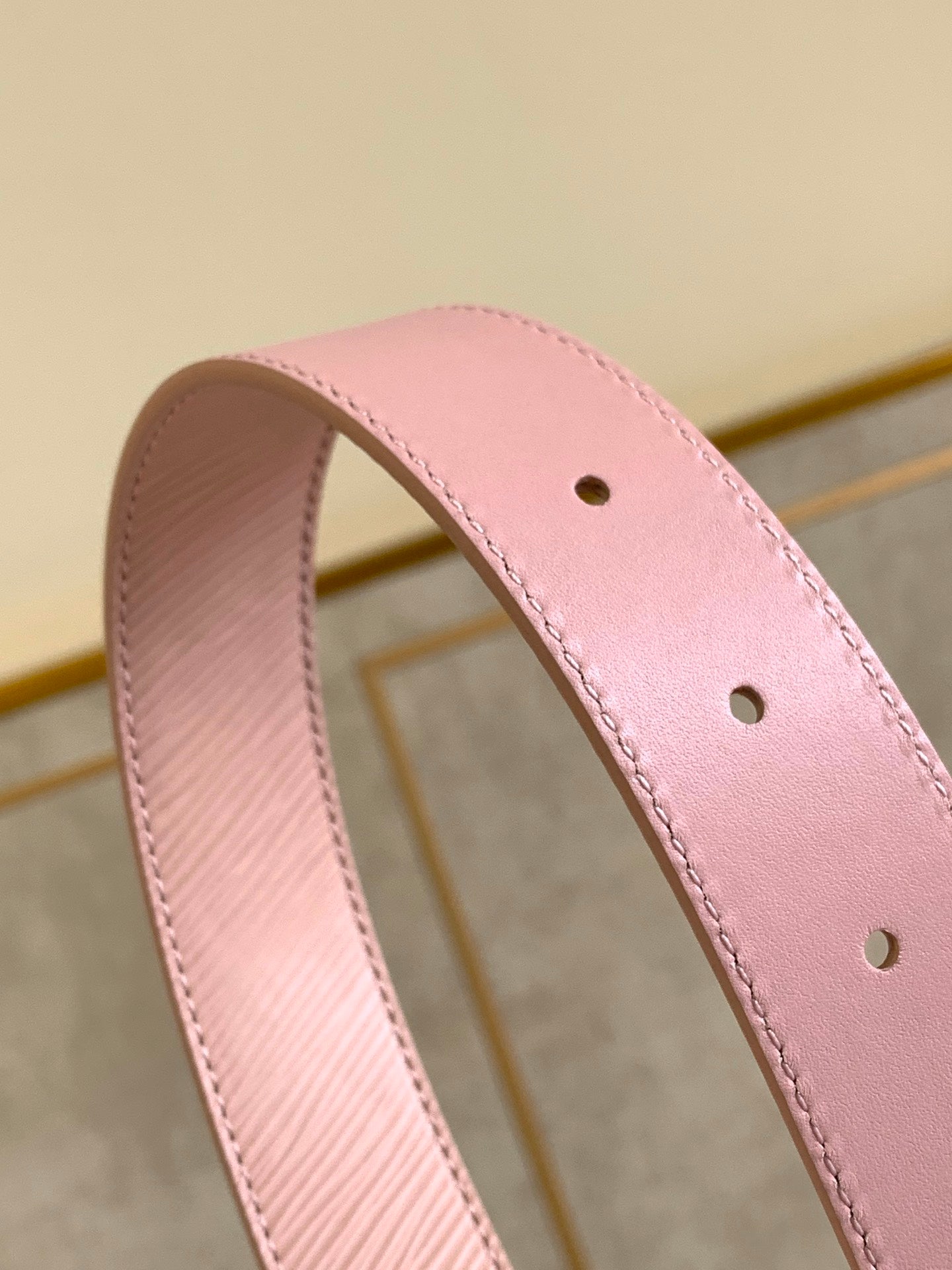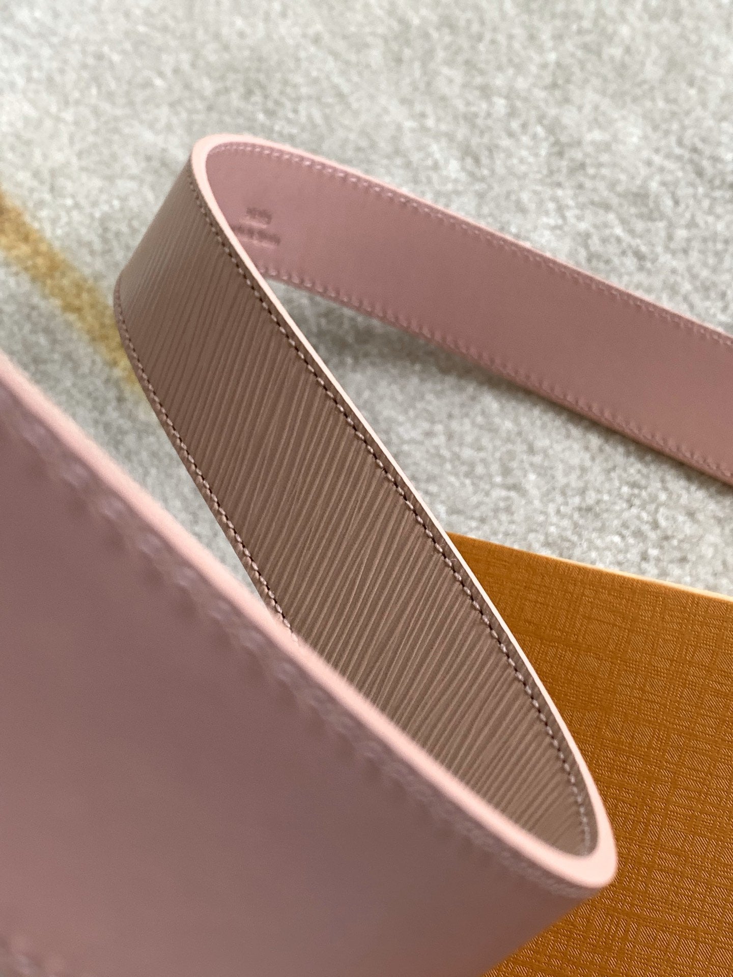 WOMEN'S LV BELT SILVER BUCKLE ROSE LEATHER 30MM