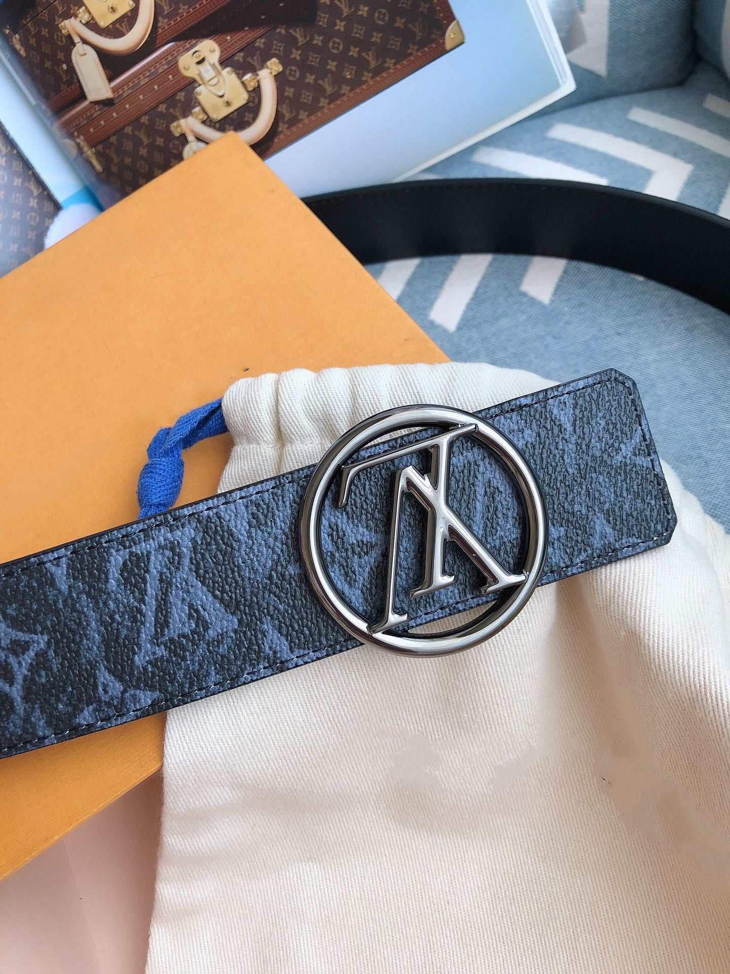 LV BELT SILVER ROUND FACE BUCKLE PRINT LEATHER 40MM