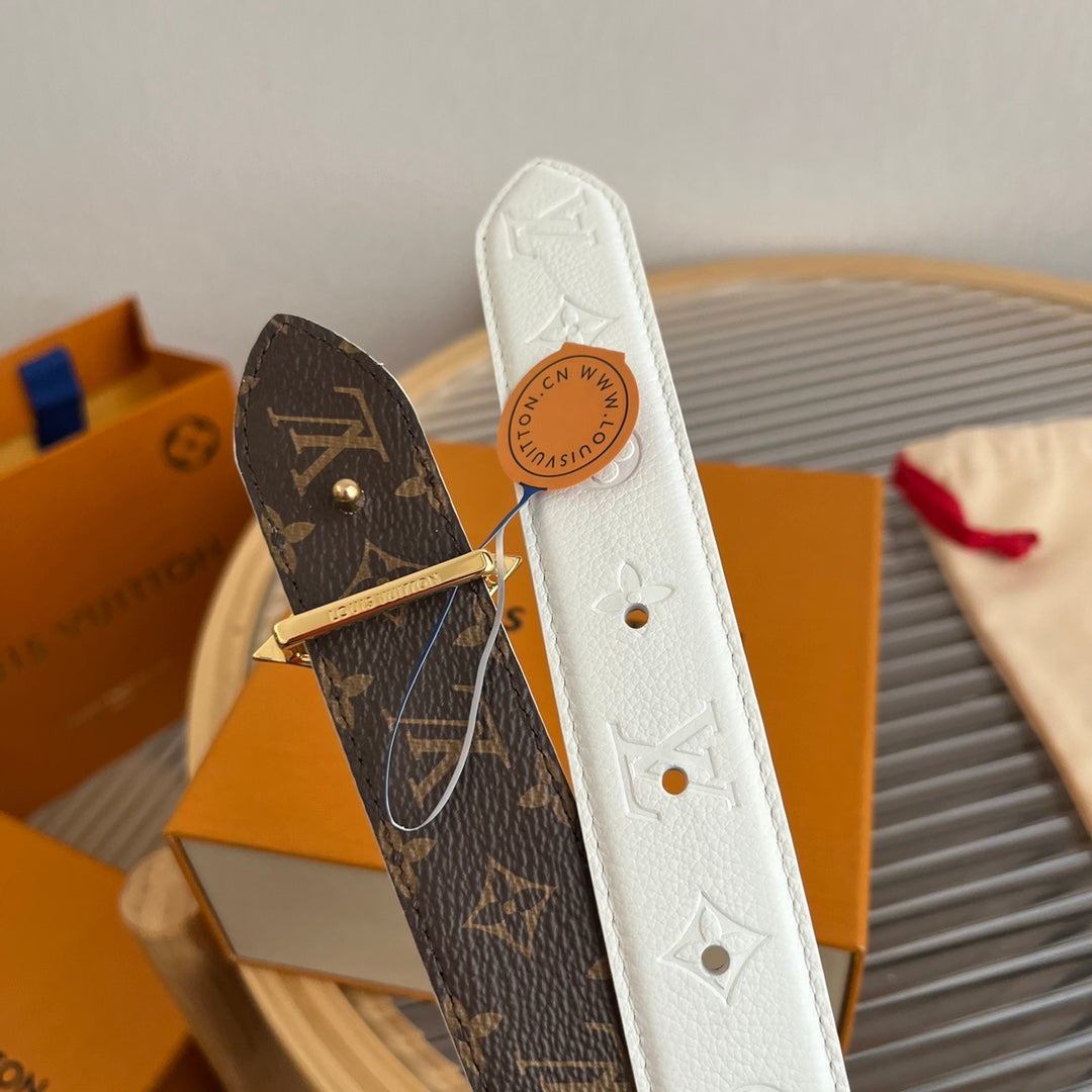 LV Flowergram 20mm Reversible Belt White Brown Calfskin
