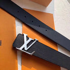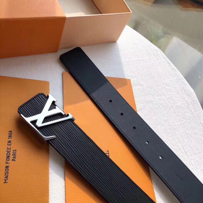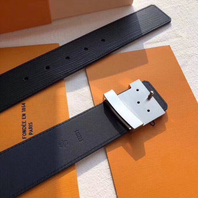 LV BELT SILVER BUCKLE BLACK EPI LEATHER 40MM
