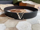 LV 40MM REVERSIBLE BELT SILVER BUCKLE BLACK CHOCOLATE LEATHER