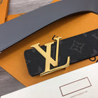 LV BELT GOLD BUCKLE BLACK FABRIC LEATHER 40MM