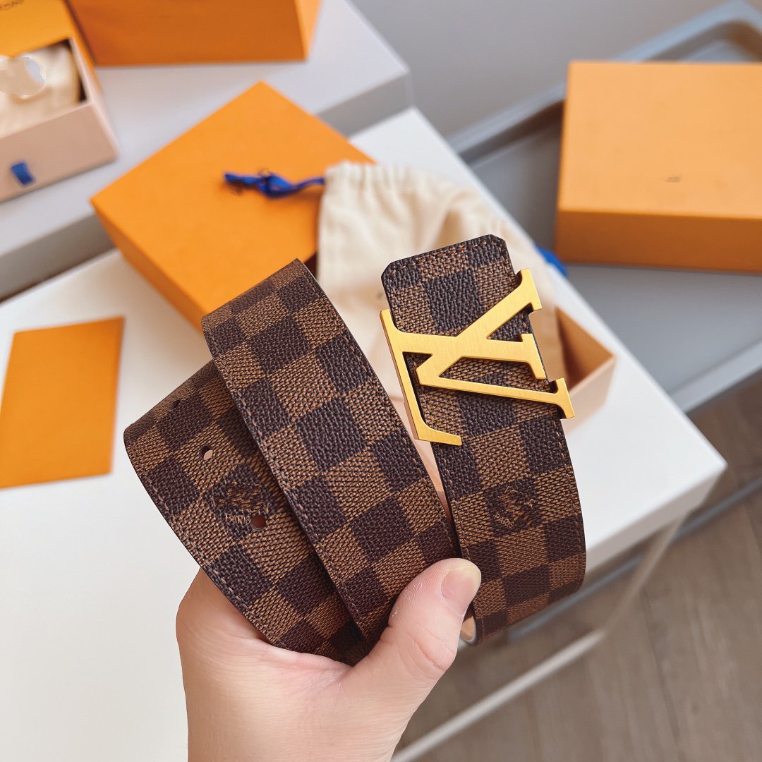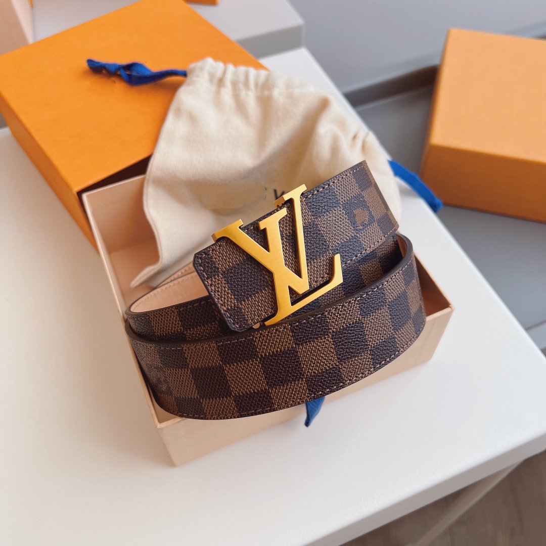 LV BELT GOLD BUCKLE CLASSIC BROWN LEATHER 40MM