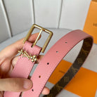 LV Bloom 30mm Belt Gold Buckle Pink Brown Leather