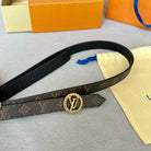 LV Circle Nautical 20mm Reversible Belt Gold Buckle Black Brown Leather