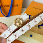 LV Circle Nautical 20mm Reversible Square End Tip Belt Gold Buckle Tan White lambskin