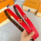 LV Flowergram 30mm Reversible Belt Silver Buckle Red Brown Leather