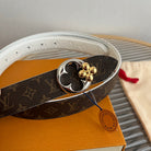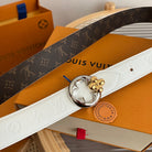 LV Flowergram Round 30mm Reversible Belt White Brown Empreinte Calfskin